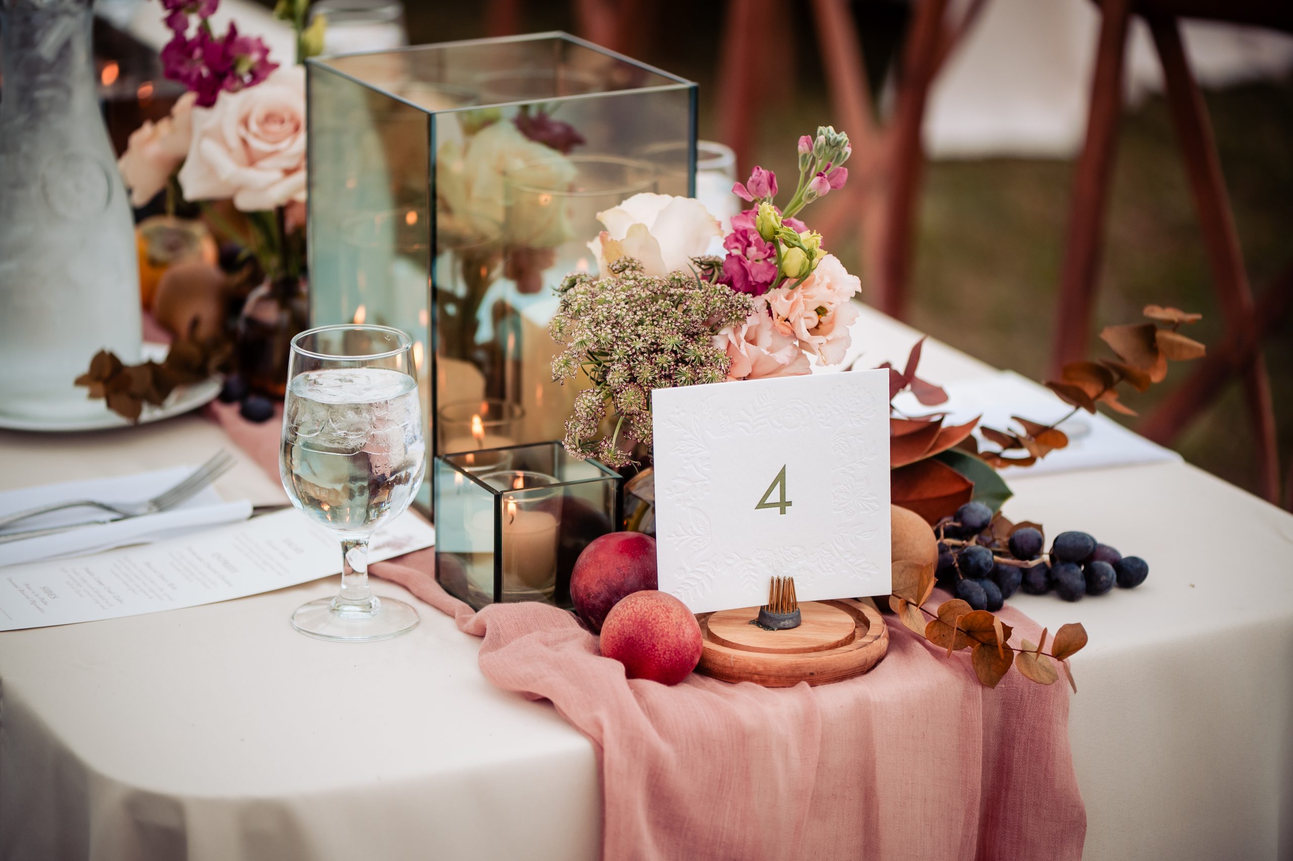 Decor is echoing this colorful shift with lively linens, vivid taper candles, playful glassware, and sculptural vessels that amplify the palette even further. Mixed textures, layered materials, and warm, romantic lighting help balance the intensity, creating an atmosphere that’s both visually captivating and beautifully cohesive.
