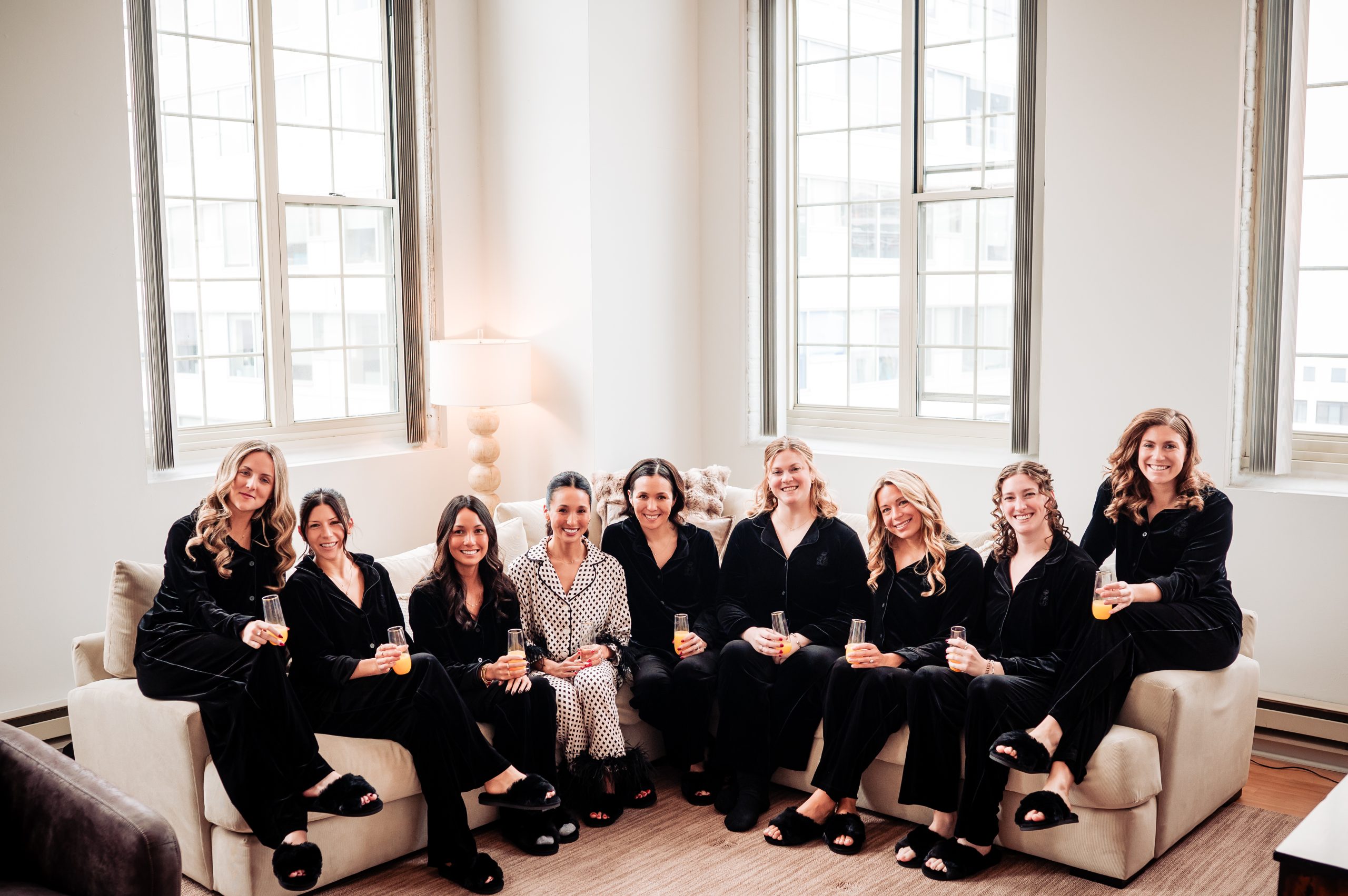 Alexis spent the morning at their Philadelphia apartment surrounded by her eight bridesmaids, two flower girls, and close family. The energy was joyful and relaxed with champagne toasts, laughter, and plenty of candid moments. As her hair and makeup team helped her feel radiant and confident, the final details came together and set the tone for the celebration ahead.