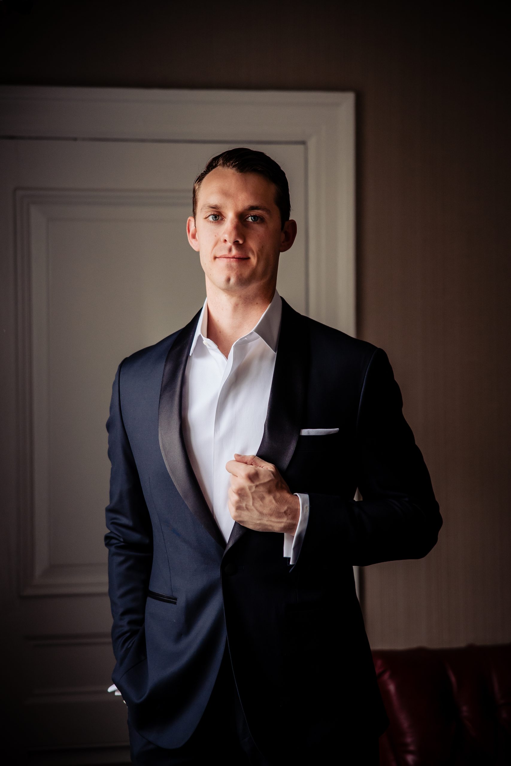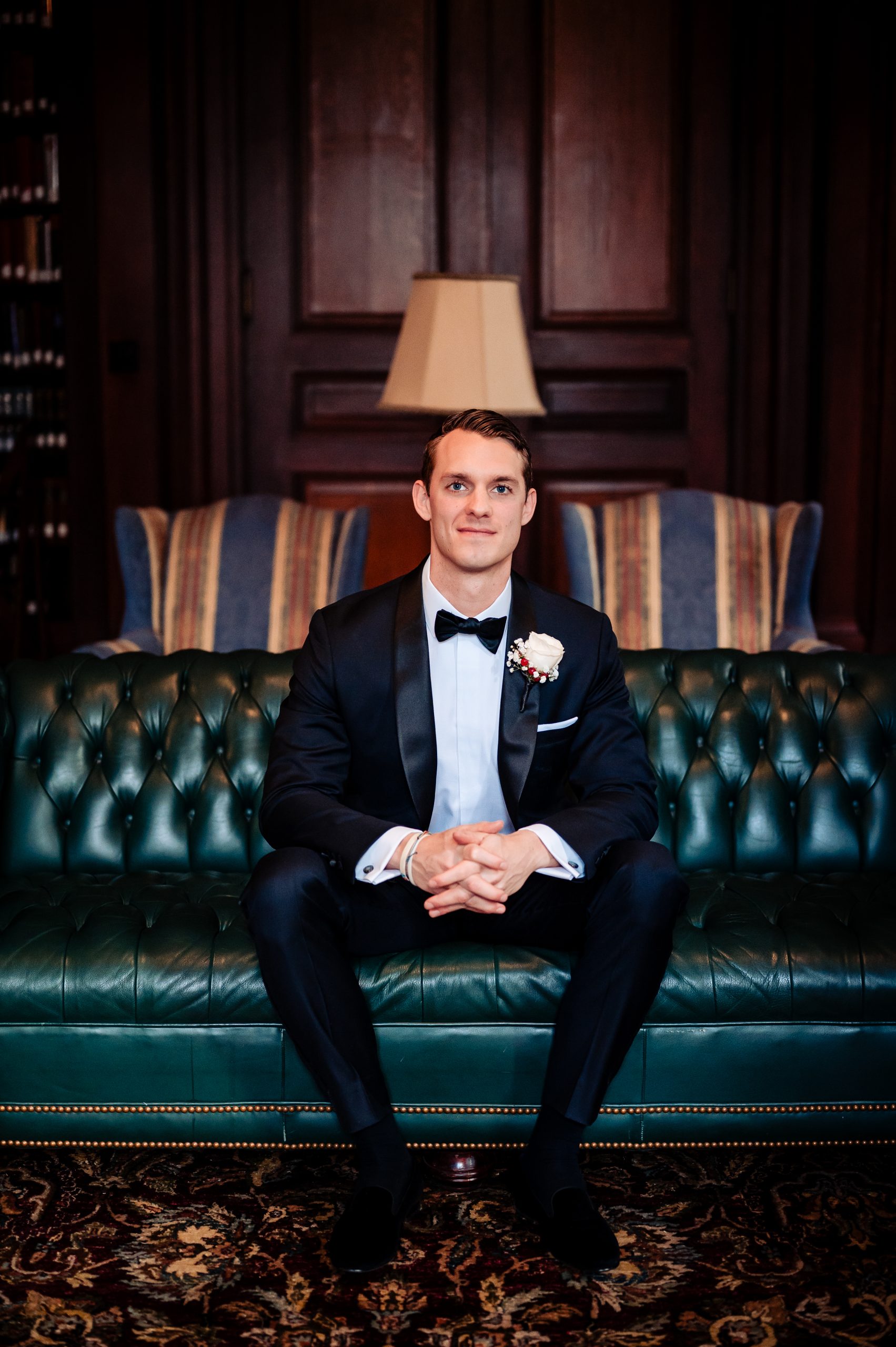 Scott prepared at the Union League alongside his seven groomsmen, sharing lighthearted moments and building excitement as they got ready for the day. One of the most meaningful moments before the ceremony was his first look with his mom, a quiet and emotional pause that perfectly captured their bond before he saw Alexis for the first time.