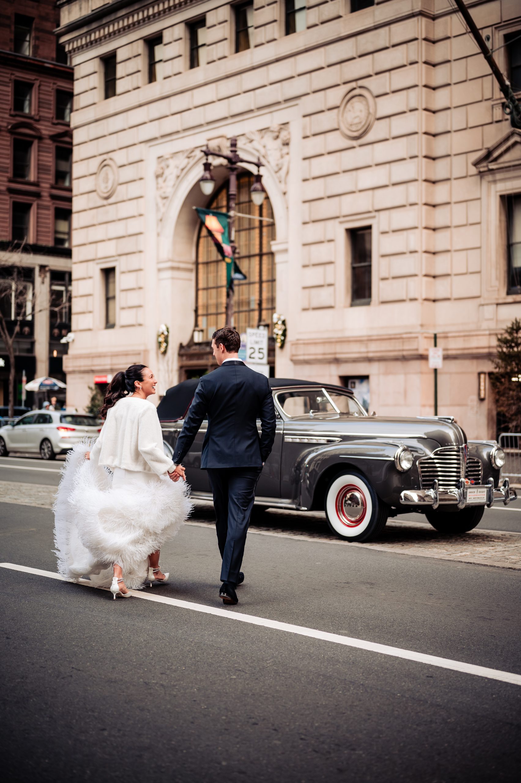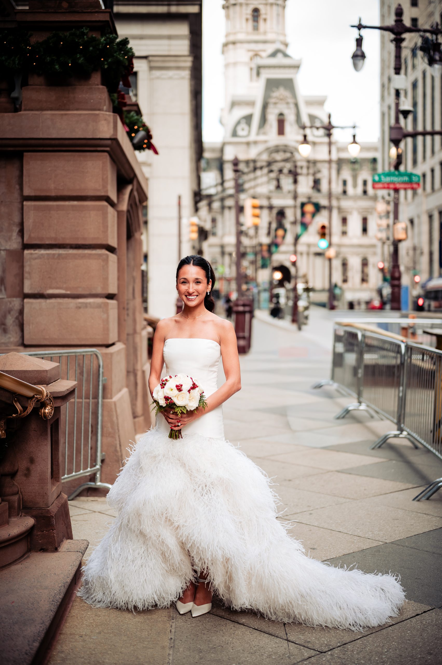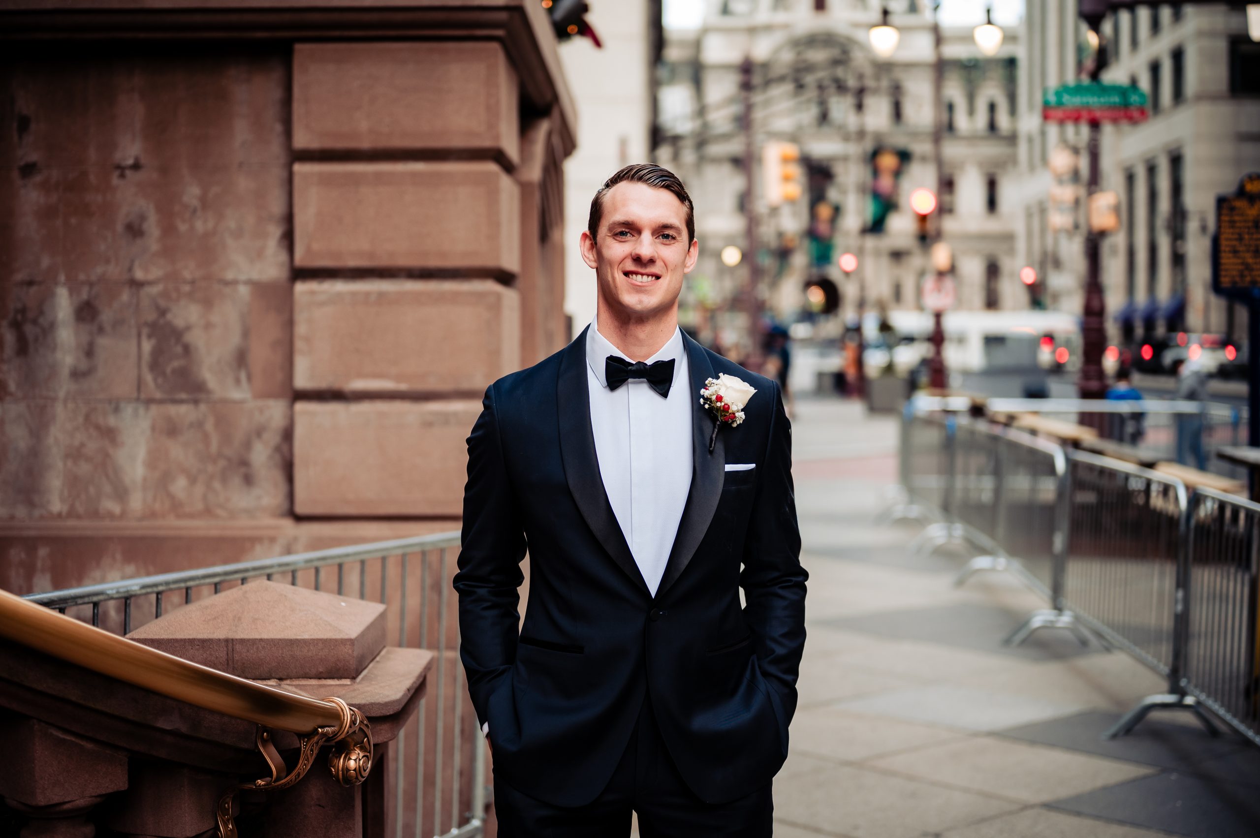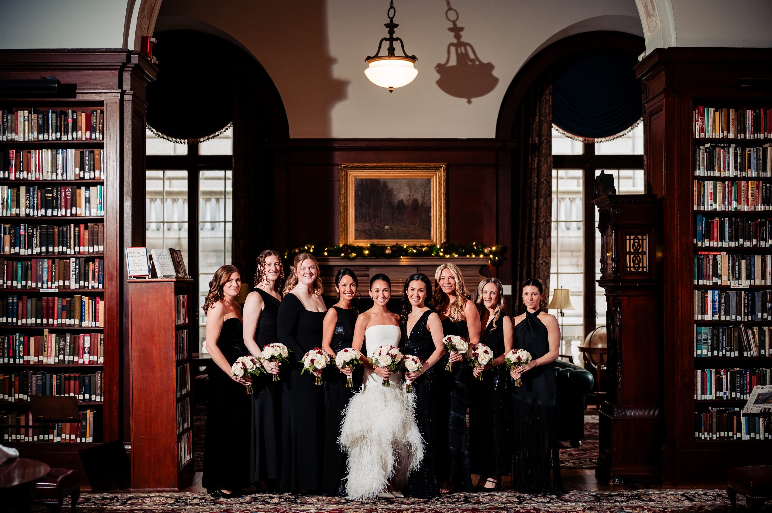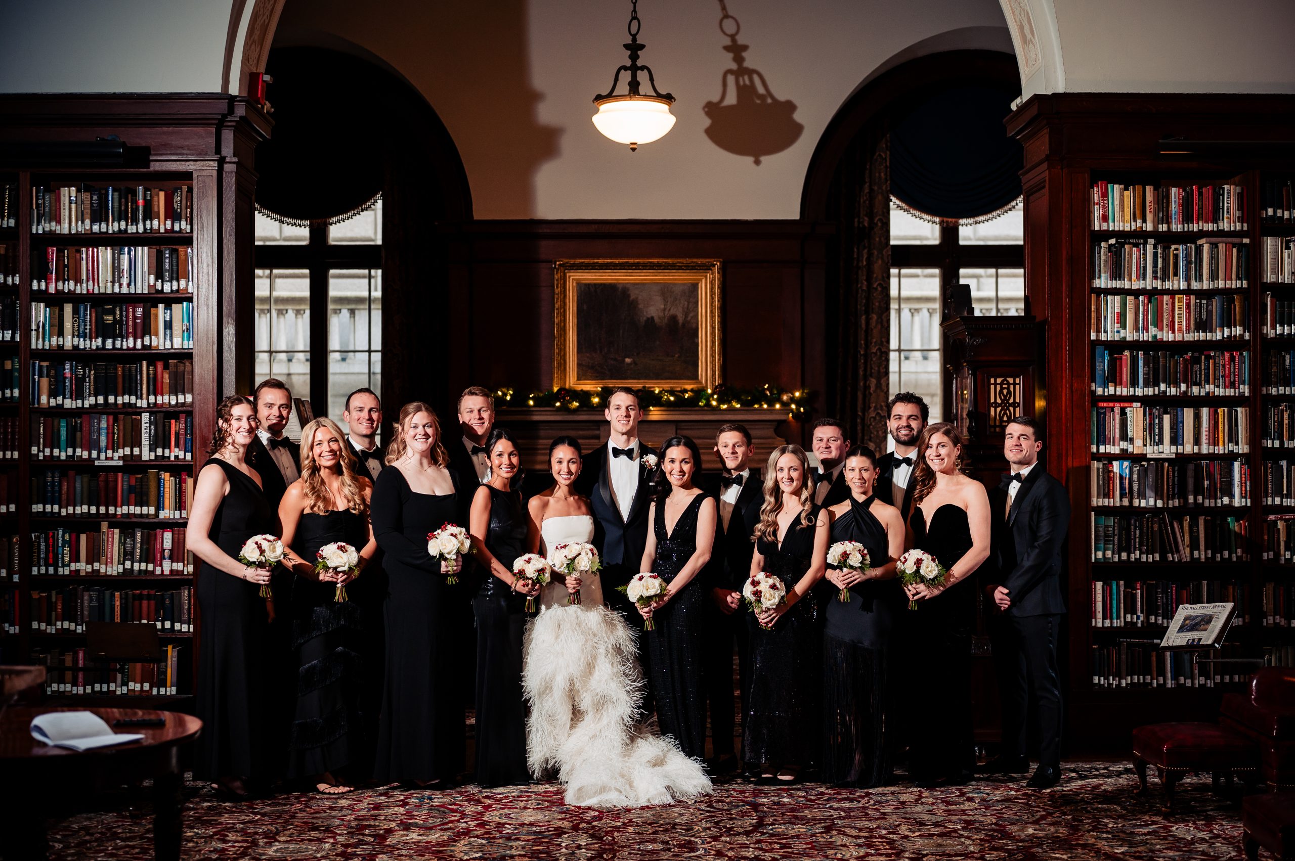 Afterward, we took portraits of Alexis and Scott in The Union League’s stunning library, where the warm, classic details of the space perfectly framed their connection. From there, we headed onto Broad Street for additional portraits, before returning inside for wedding party photos back in the library. The mix of timeless indoor elegance and vibrant city streets made for some truly beautiful portraits.