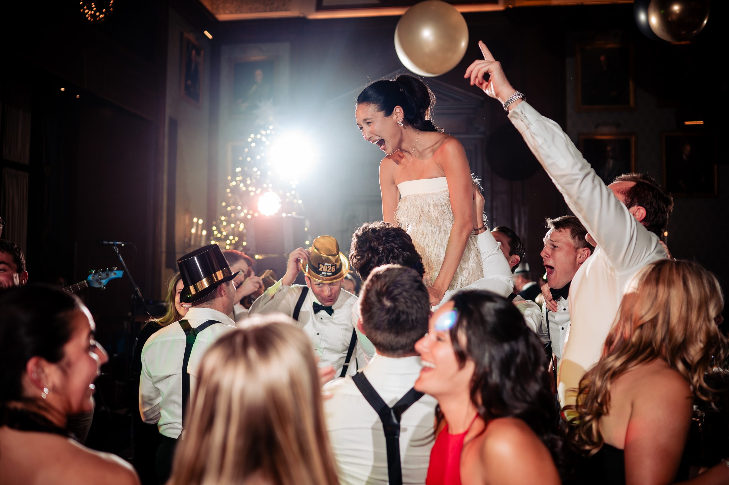 Alexis and Scott kicked off the night with their first dance as a married couple, surrounded by the people they love most. From there, the parent dances and heartfelt speeches followed, bringing in all the emotion before the celebration really took off. As midnight approached, Alexis changed into a sparkling mini dress, with Scott by her side, ready to ring in the New Year together. Champagne glasses were raised, dancing kept the good vibes going, and cheers echoed through the Union League as 2026 officially began!