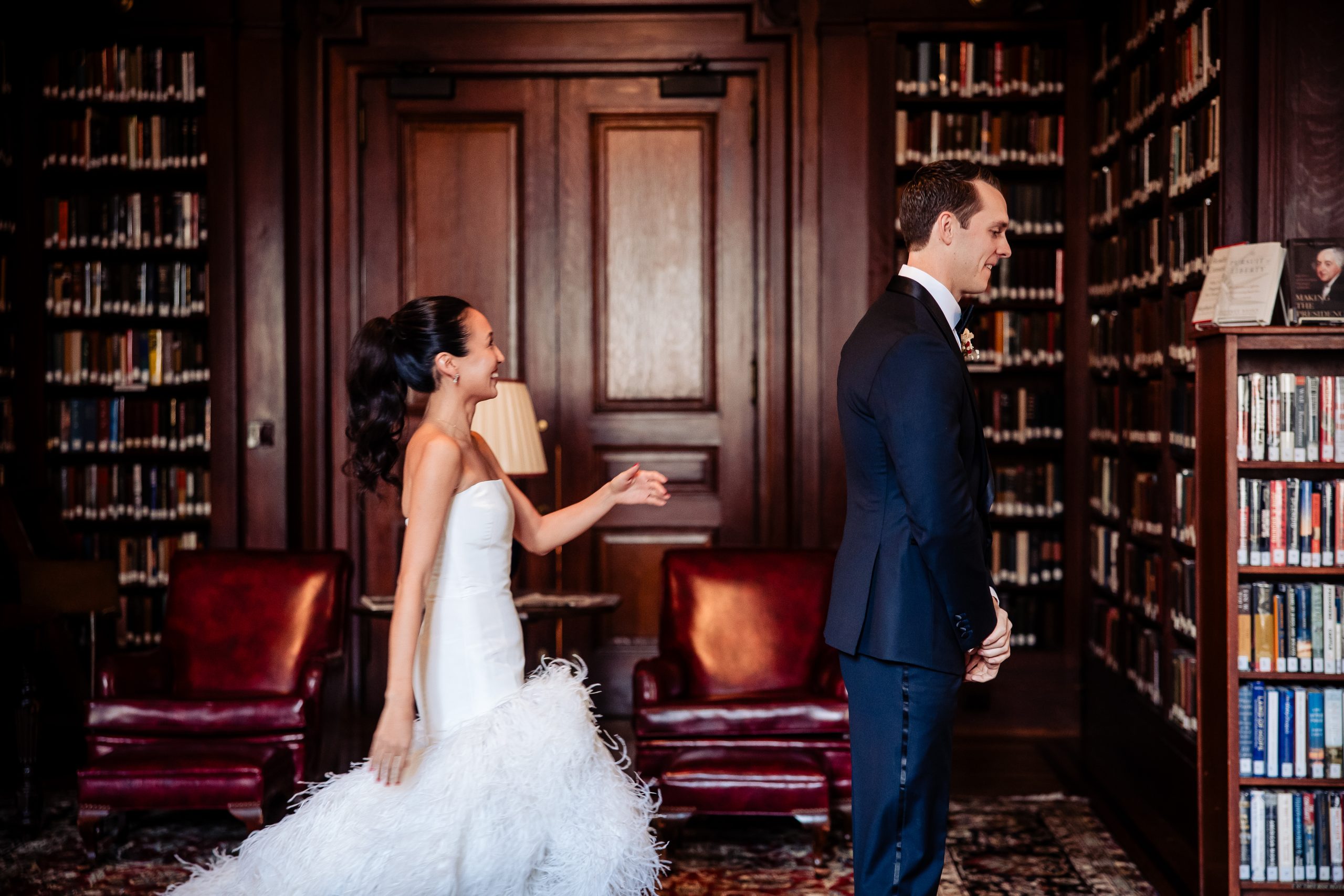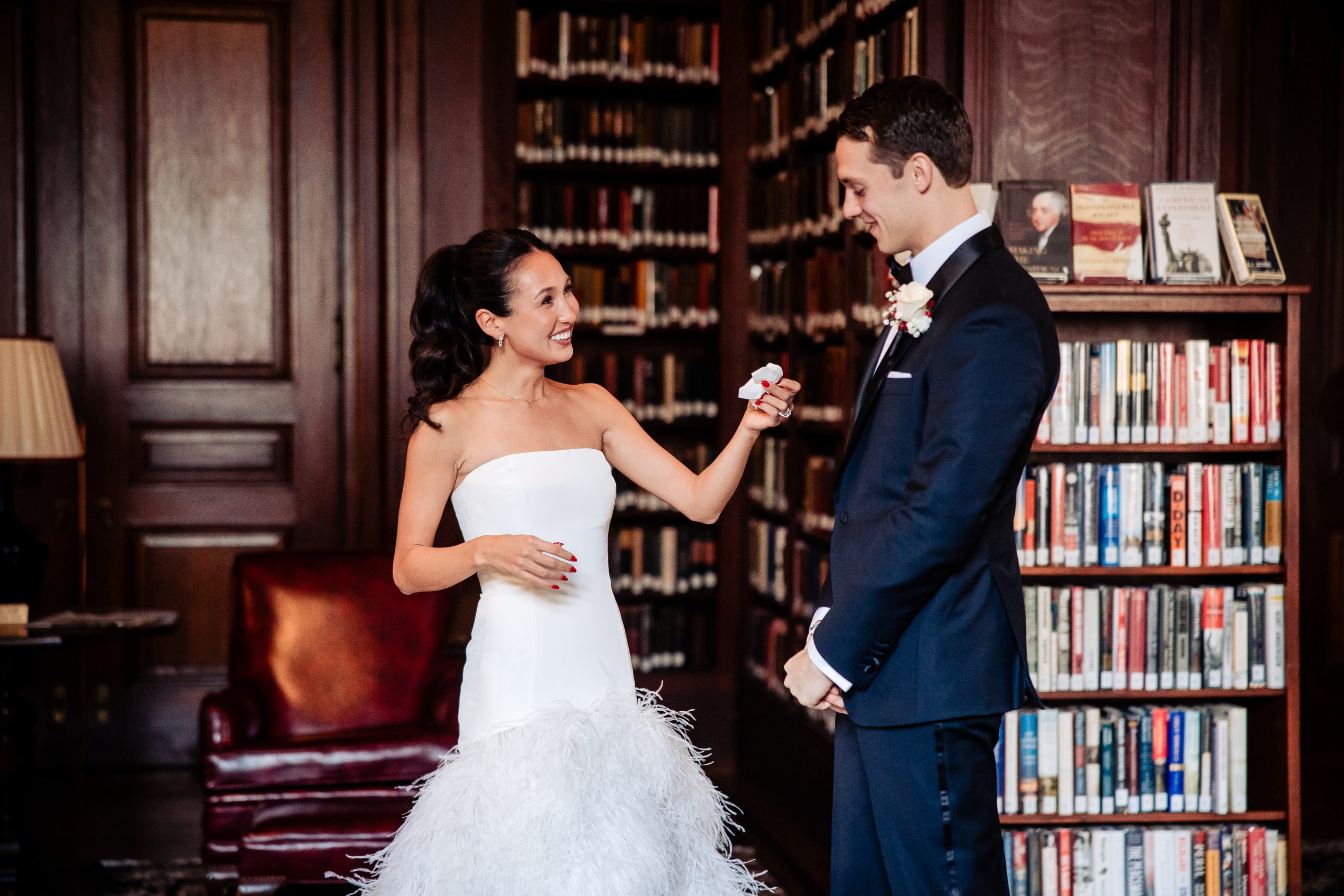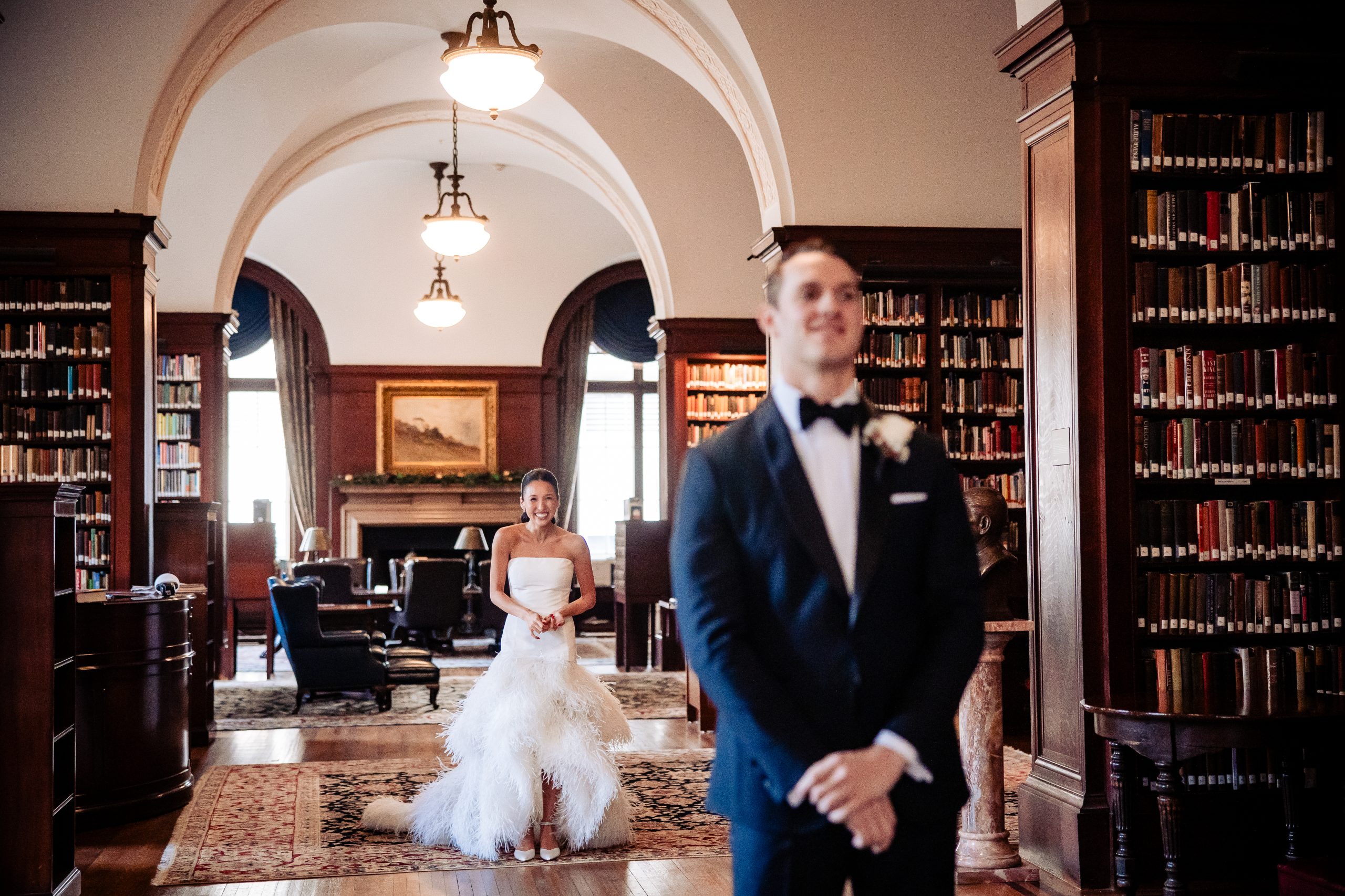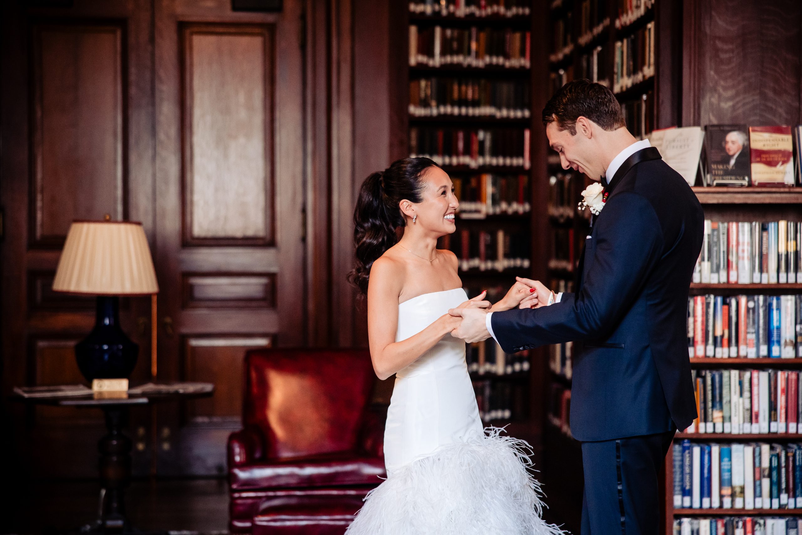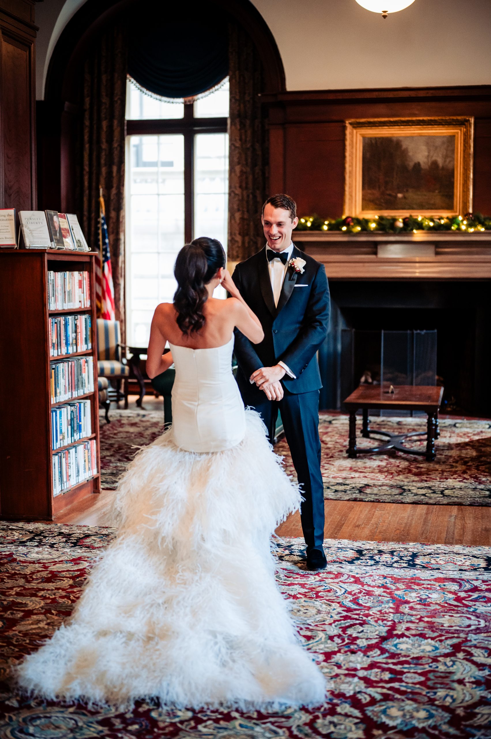 Alexis shared a sweet first look with her dad, filled with happy tears, tight hugs, and the kind of pride only a father can show. A few moments later, she met Scott in the library at The Union League for their first look, giving them a quiet moment to soak in the significance of the day together.