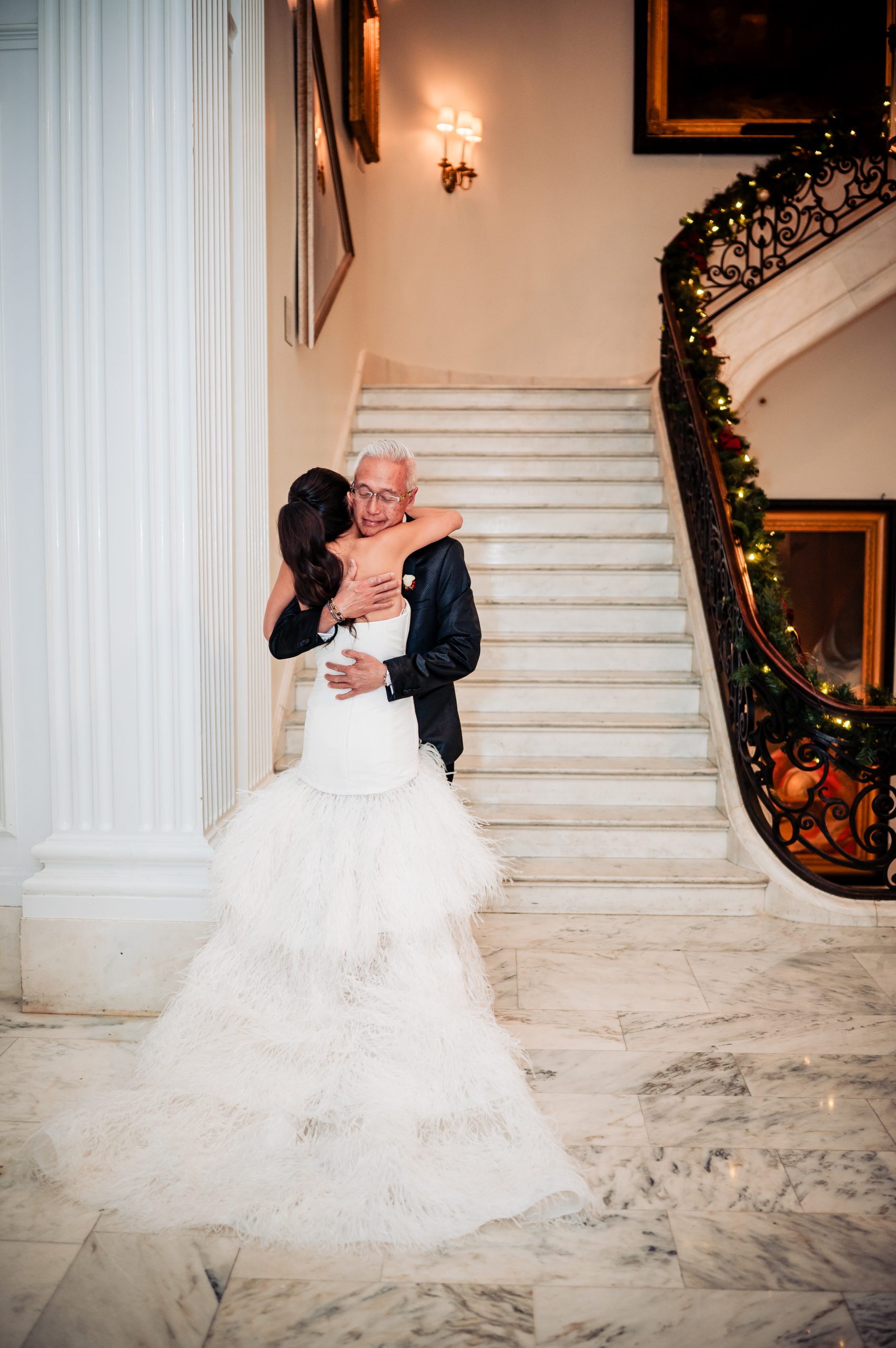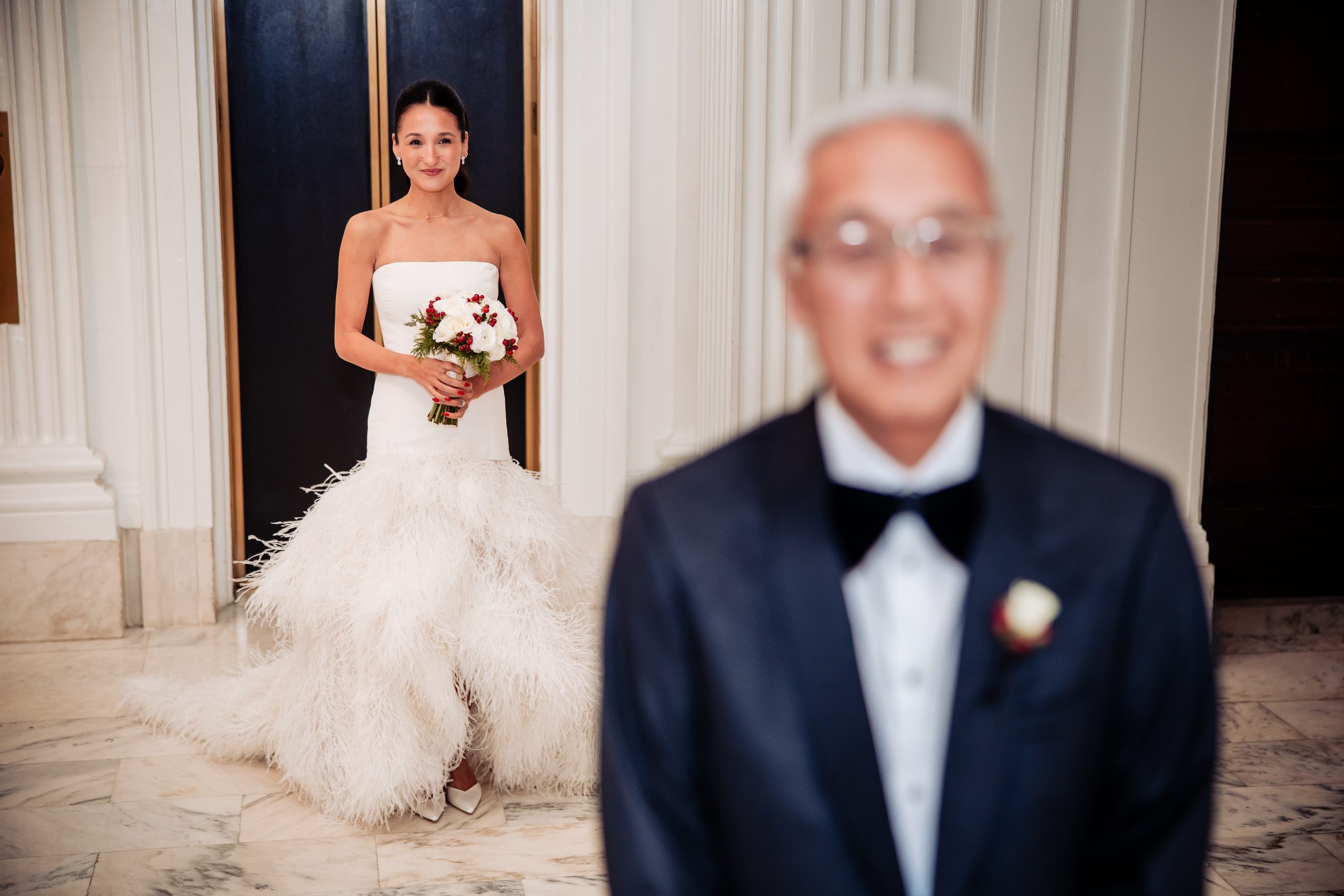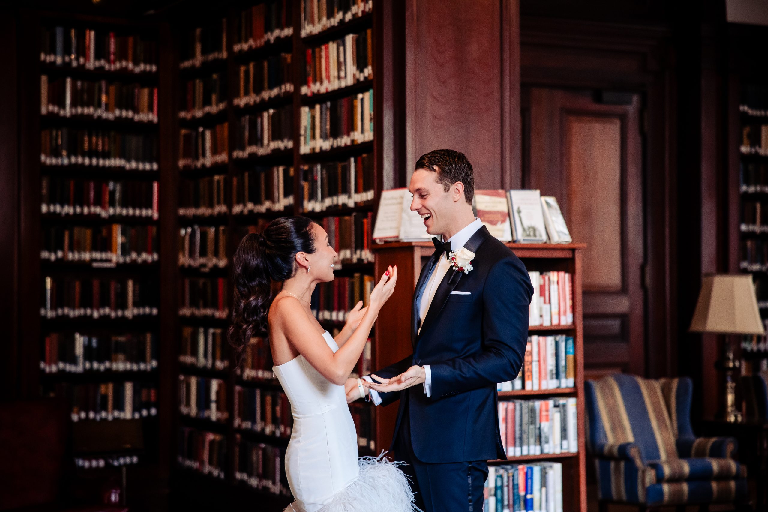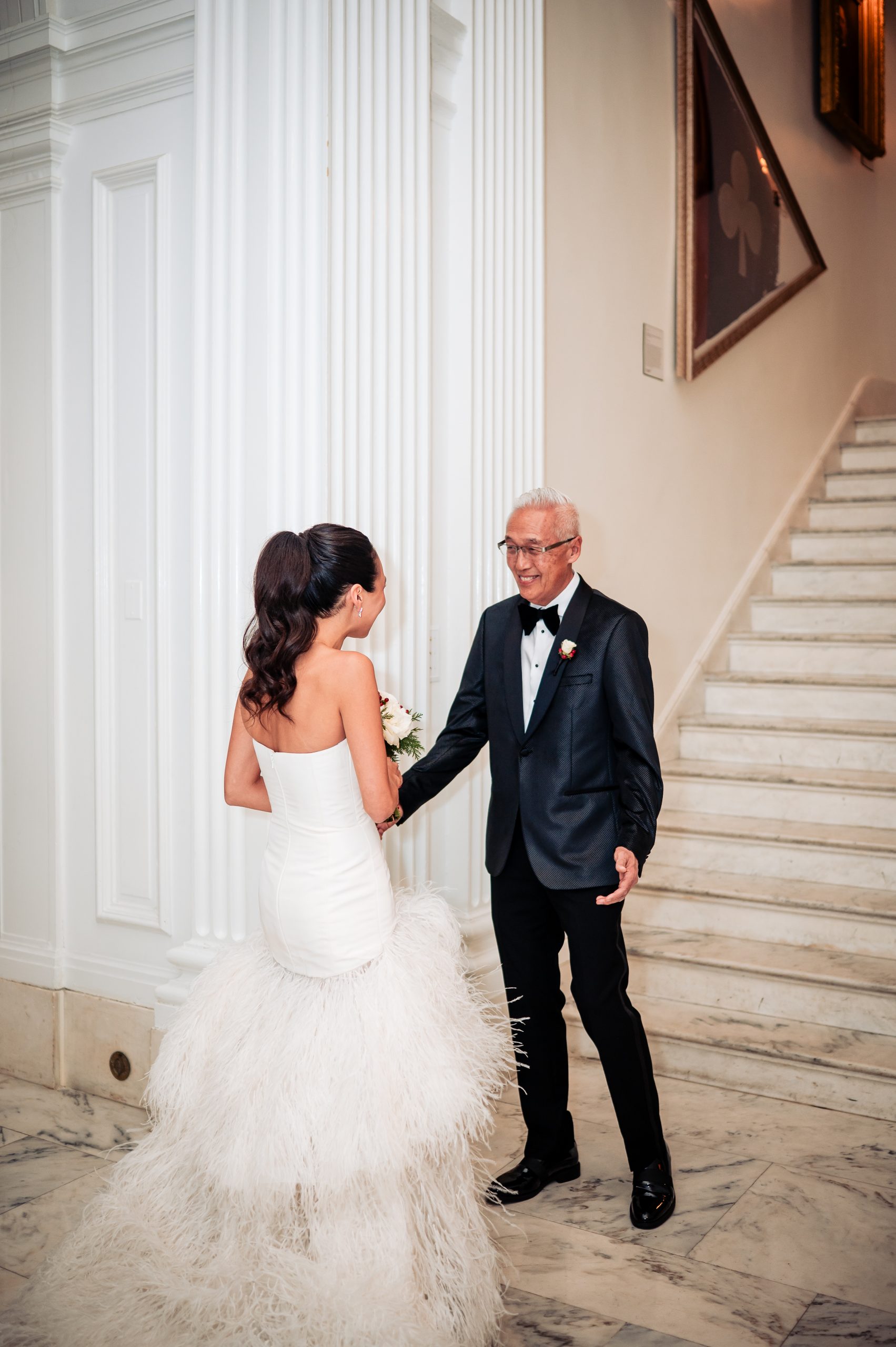 Alexis shared a sweet first look with her dad, filled with happy tears, tight hugs, and the kind of pride only a father can show. A few moments later, she met Scott in the library at The Union League for their first look, giving them a quiet moment to soak in the significance of the day together.