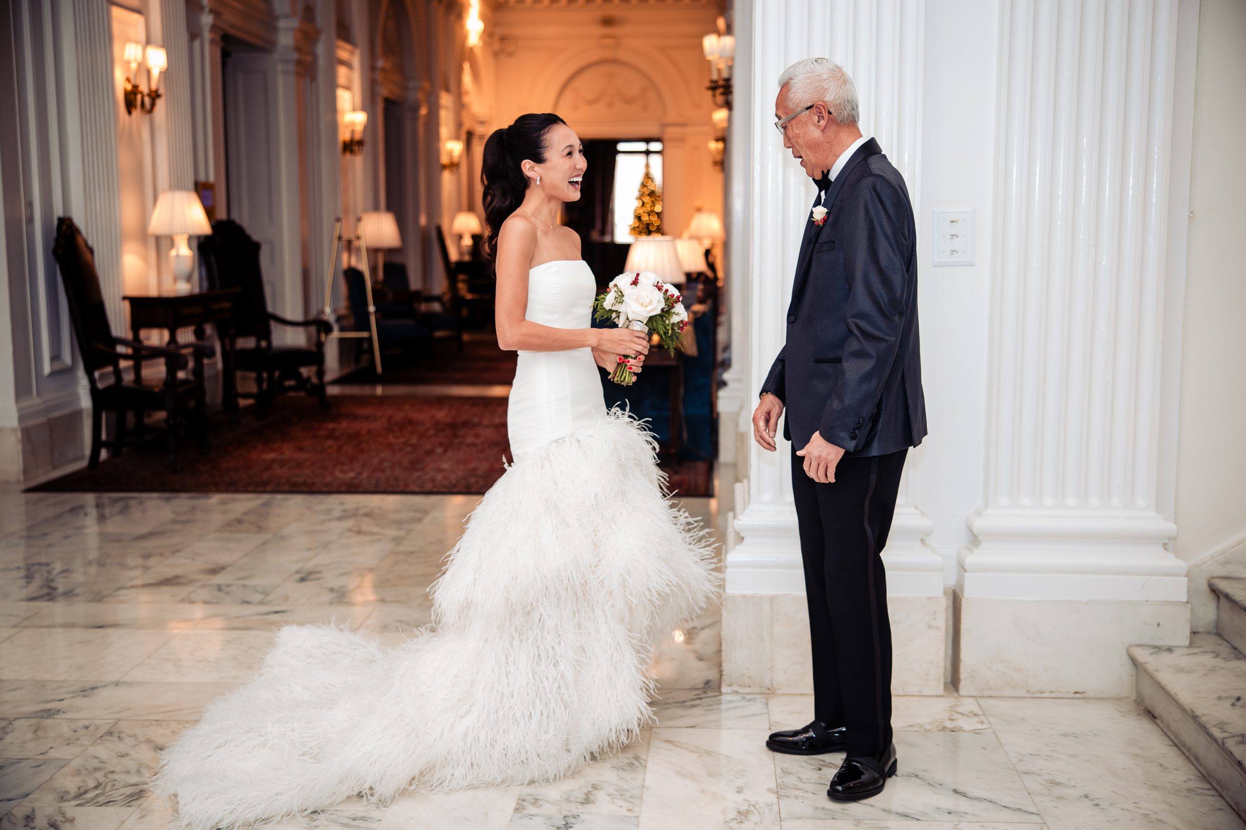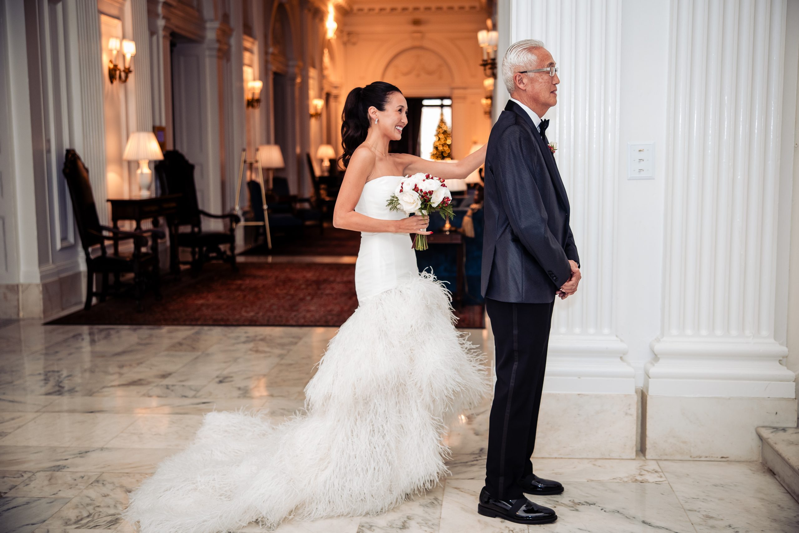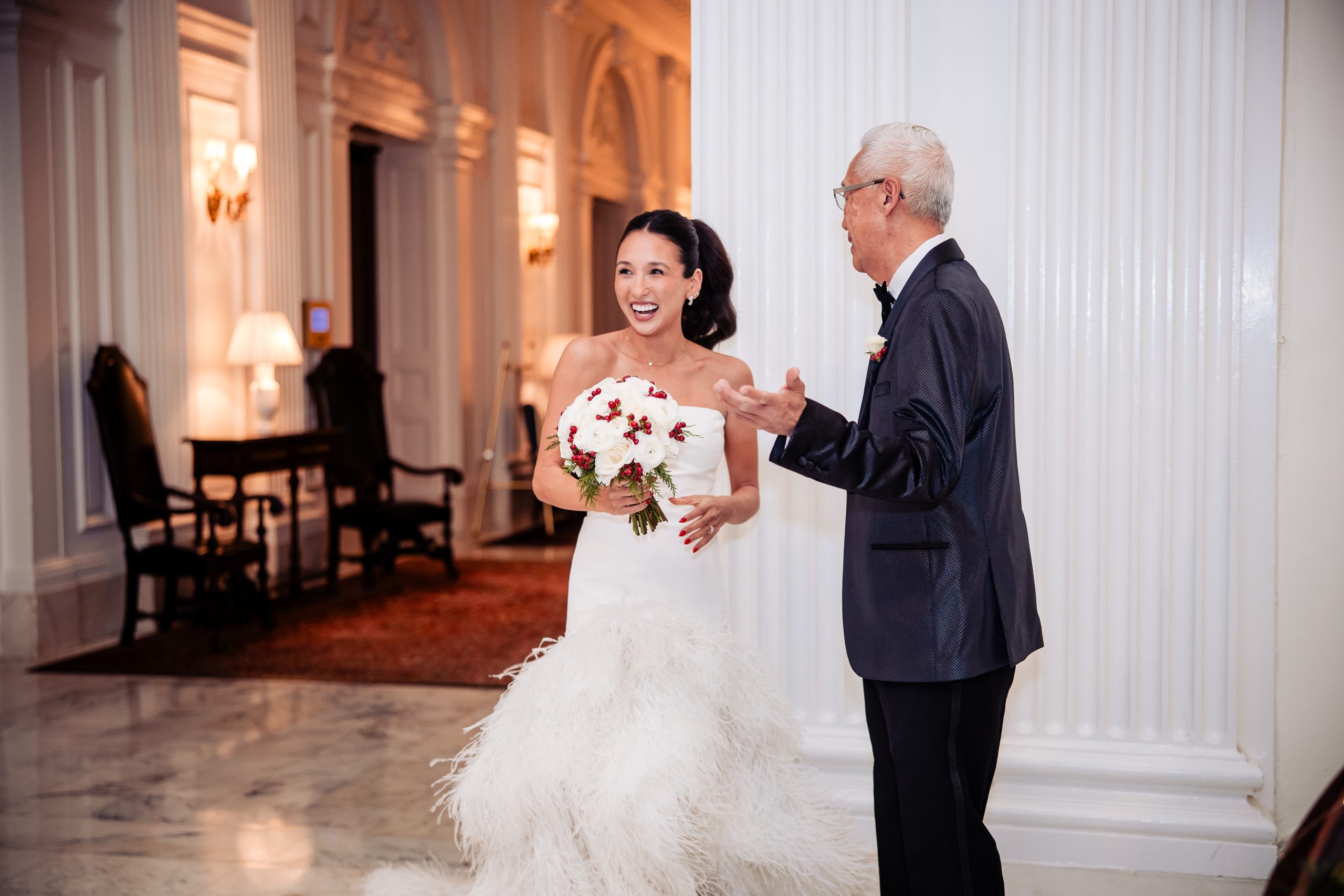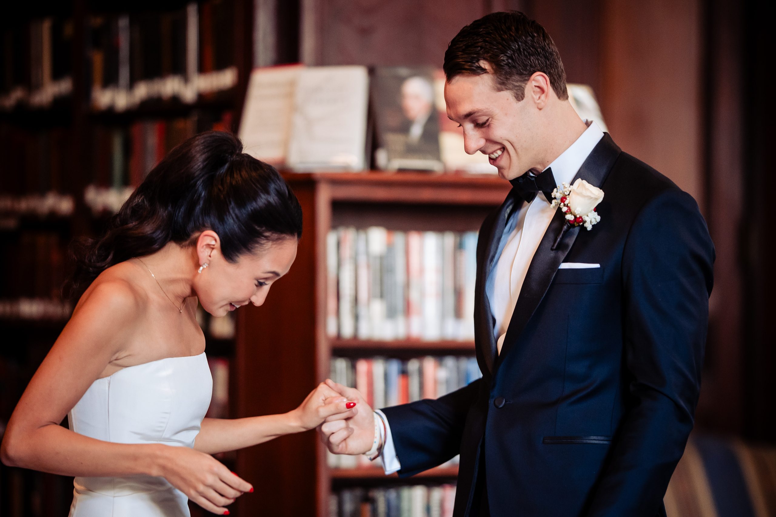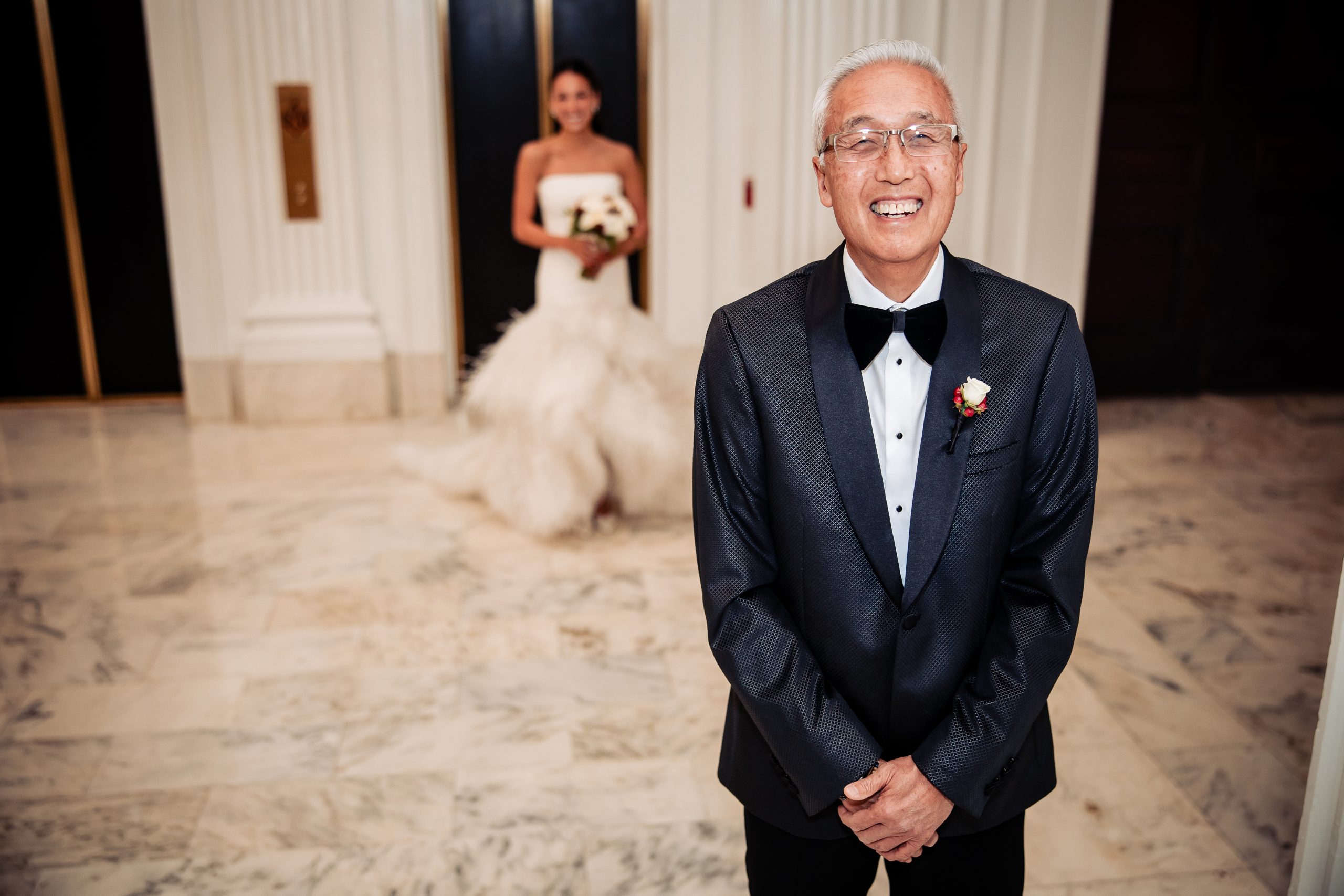 Alexis shared a sweet first look with her dad, filled with happy tears, tight hugs, and the kind of pride only a father can show. A few moments later, she met Scott in the library at The Union League for their first look, giving them a quiet moment to soak in the significance of the day together.