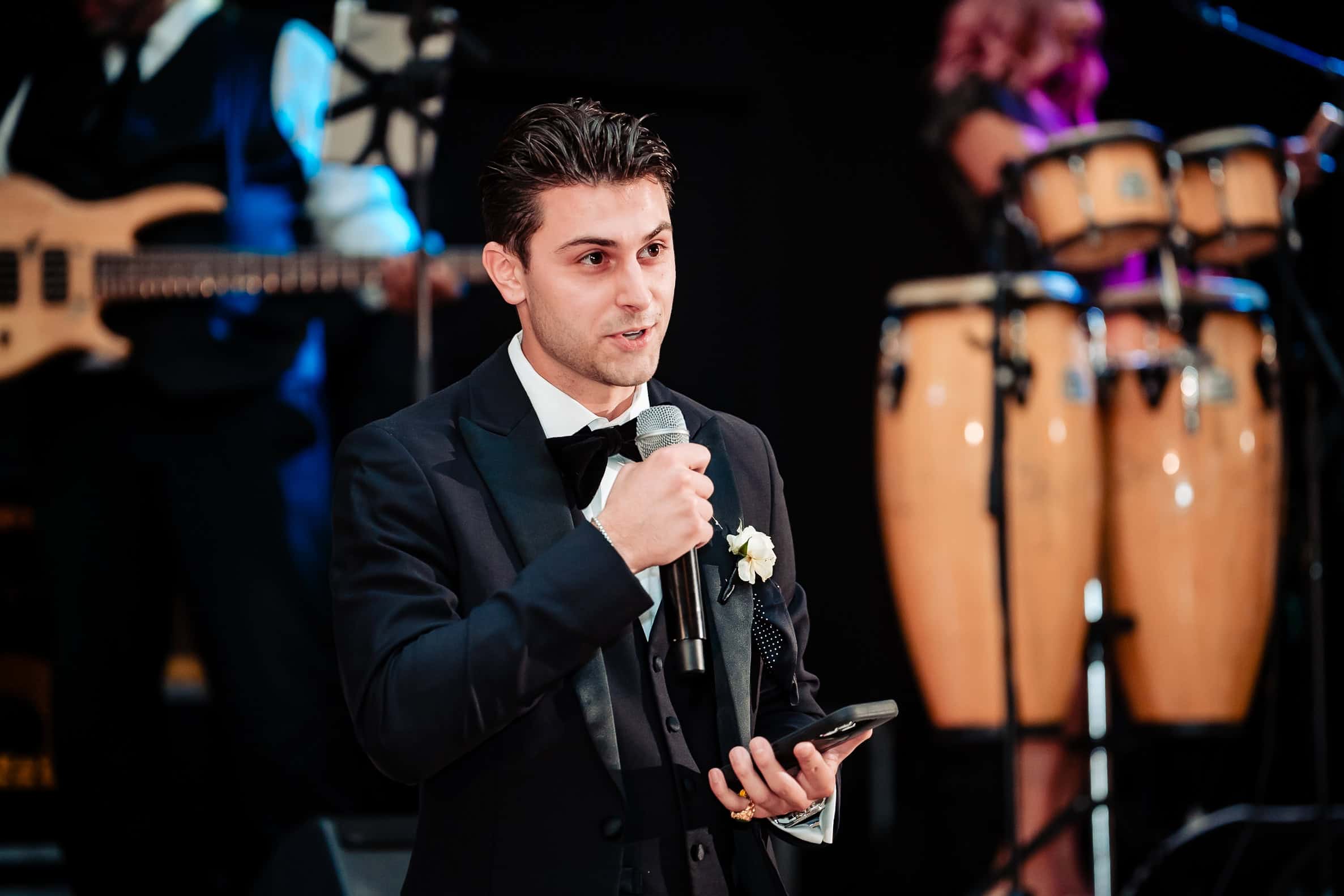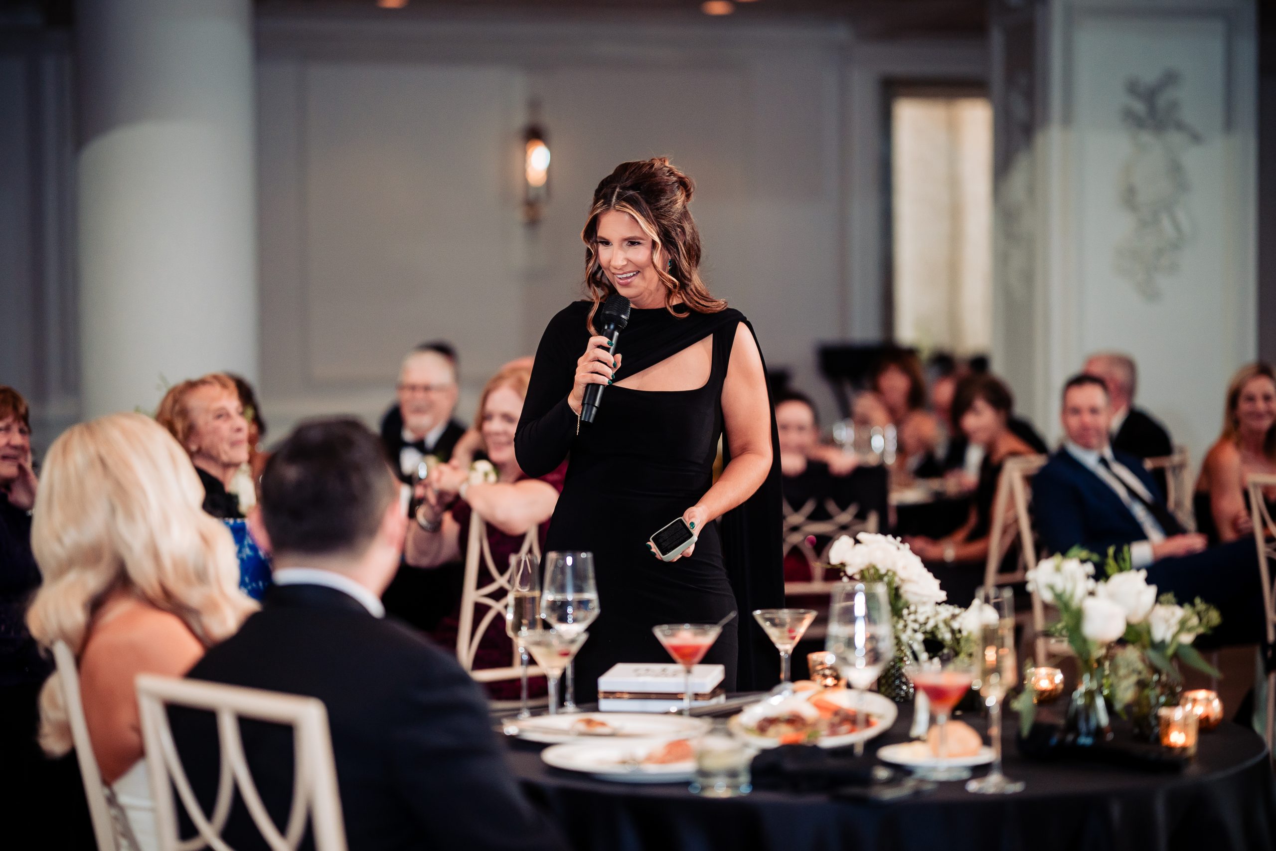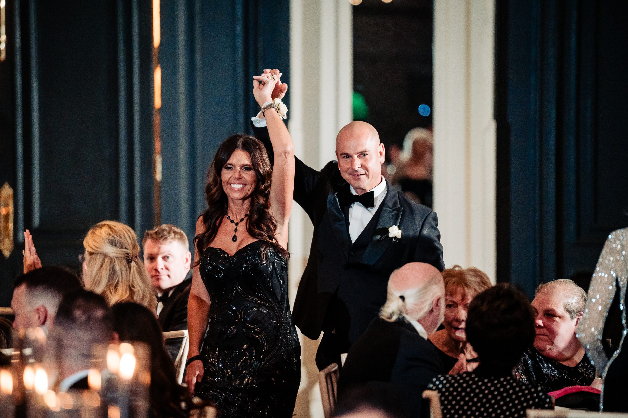 The Grand Belle was built to host large scale events, and it shows in the layout and flow of the ballroom. The spacious dance floor, elevated stage, and dramatic design create an incredible setting for receptions. The ballroom can accommodate up to 500 guests seated with a dance floor or up to 1,500 guests for a cocktail style celebration, making it one of the most impressive event spaces in Philadelphia. Whether it is the couple’s grand entrance, heartfelt speeches, or a packed dance floor, the room naturally amplifies the energy of the celebration.