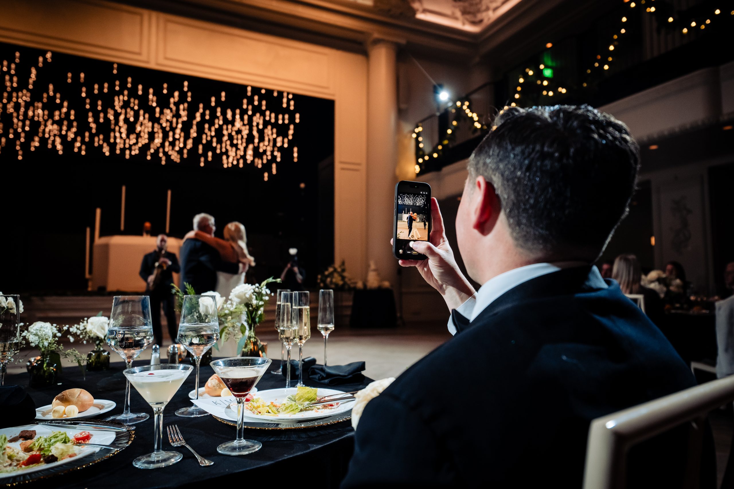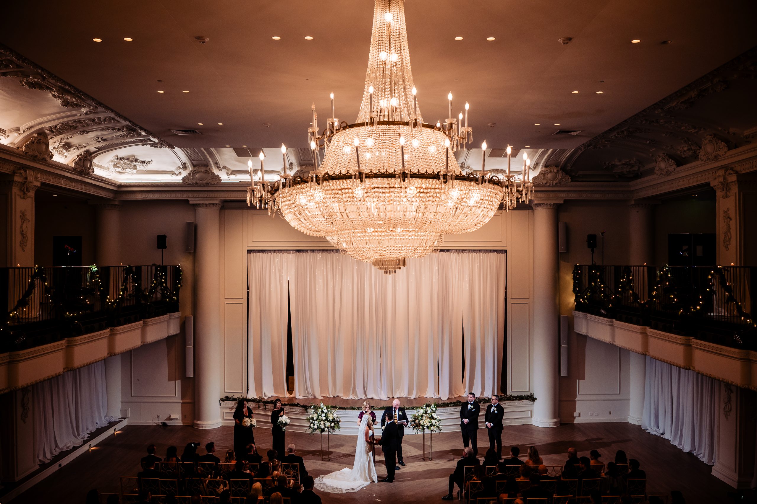 As photographers and videographers, we love how the ballroom’s design enhances wedding imagery. The chandeliers, ornate molding, and warm interior lighting create depth and dimension in photos and video throughout the day. Every corner of the space offers an elegant backdrop that feels timeless and distinctly Philadelphia.