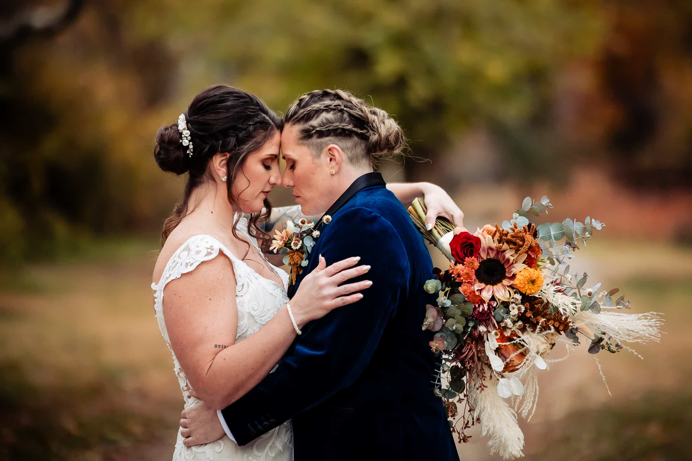 Jessica and Amanda embarked on a journey to exchange vows in a unique, edgy, and elegant fall wedding at The River House at Odette’s. We had the honor of capturing the essence of their love amidst the vibrant fall foliage and finally reveling in a lively reception with family and friends. The brides, each in