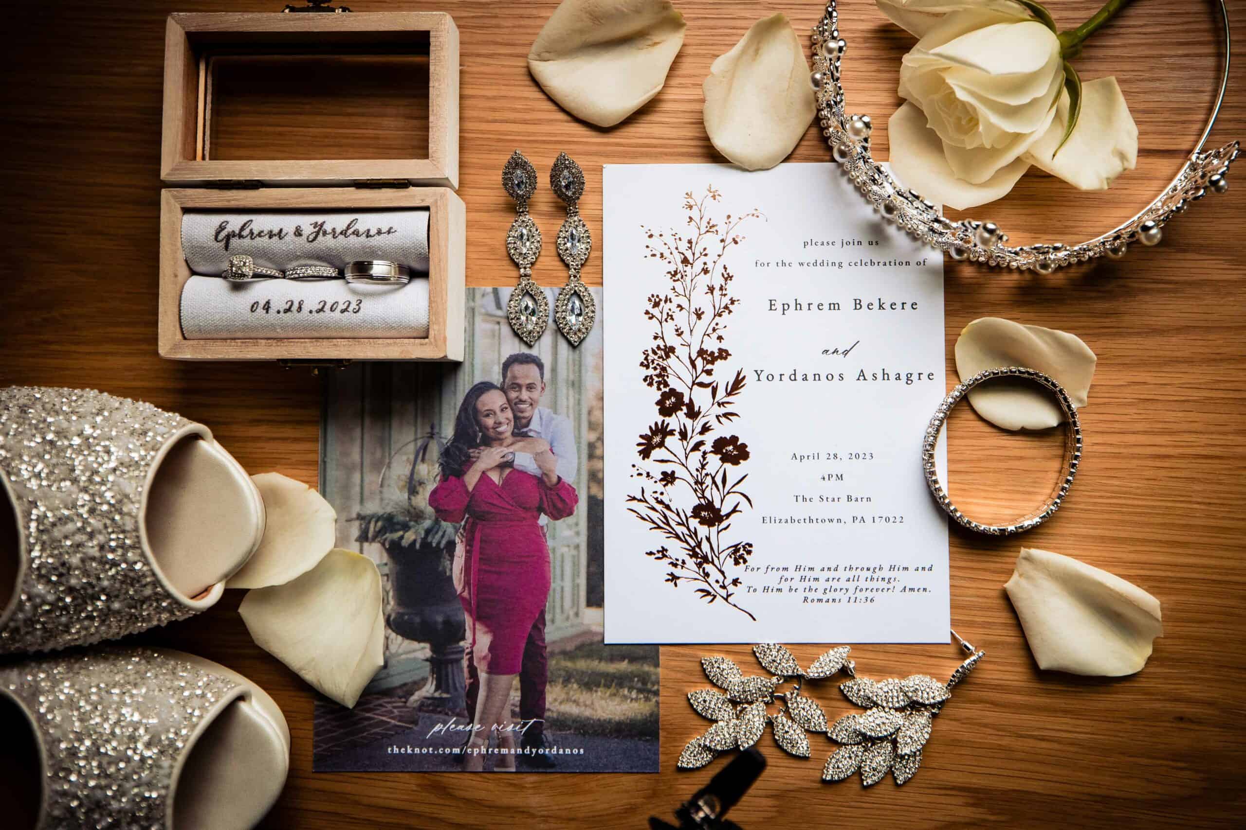 You can prepare all of your items in one place before your wedding day and put them in a box (or somewhere safe). The day of your wedding, all you need to do is bring all your items and your photographer will take care of creating a stunning composition.