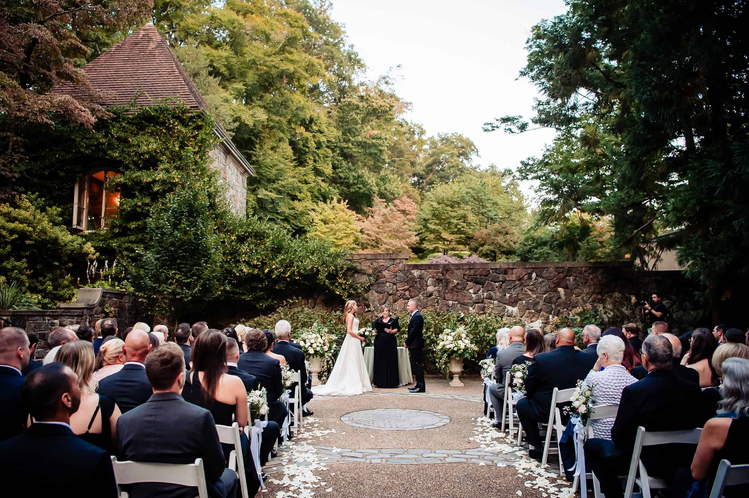 Framed by the lush greenery and vibrant flowers of Winterthur, Haley walked down the aisle toward Dakota, who couldn’t hide his smile. The sun peeked through the trees, casting a golden glow over the entire setting as their closest family and friends watched them exchange vows.