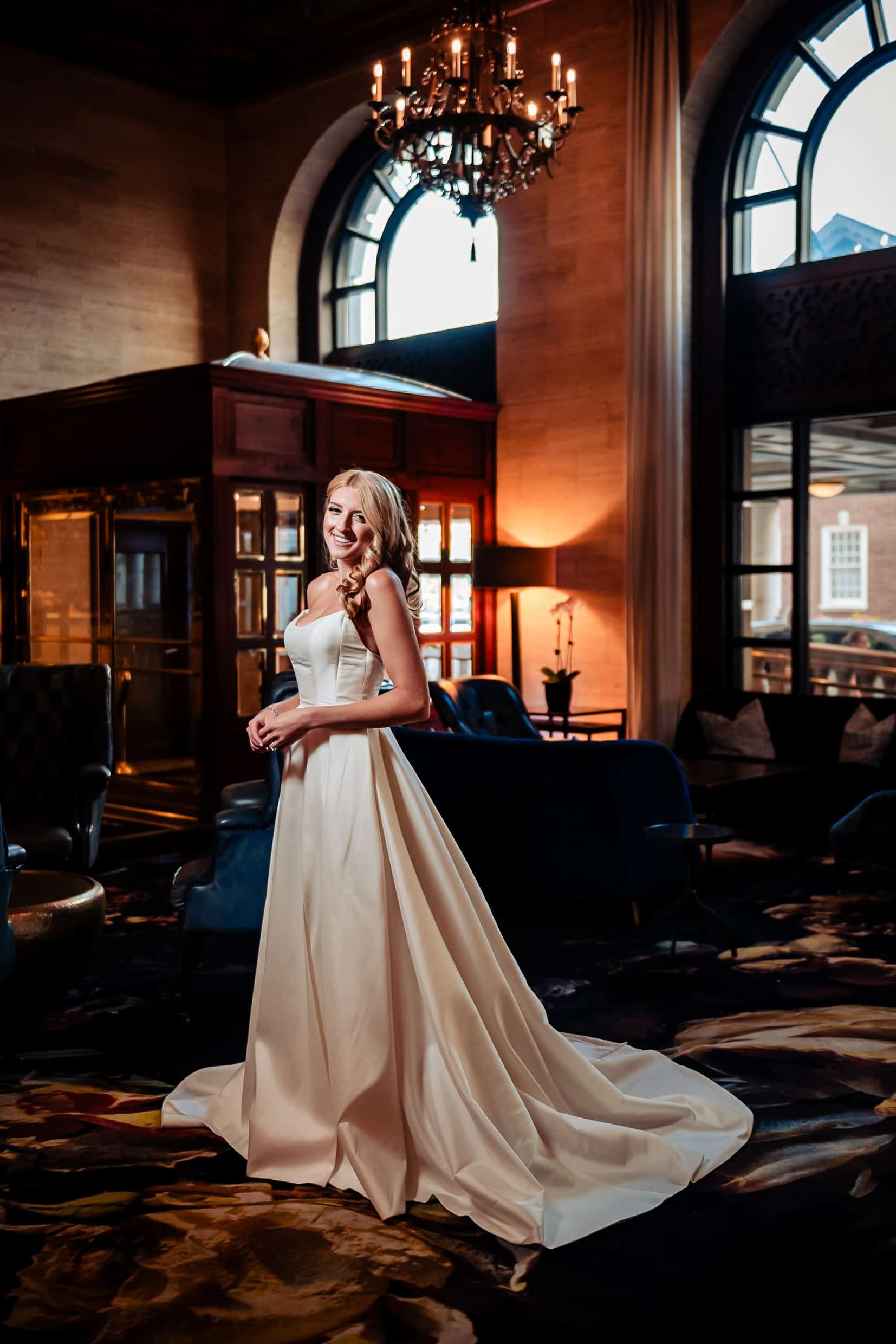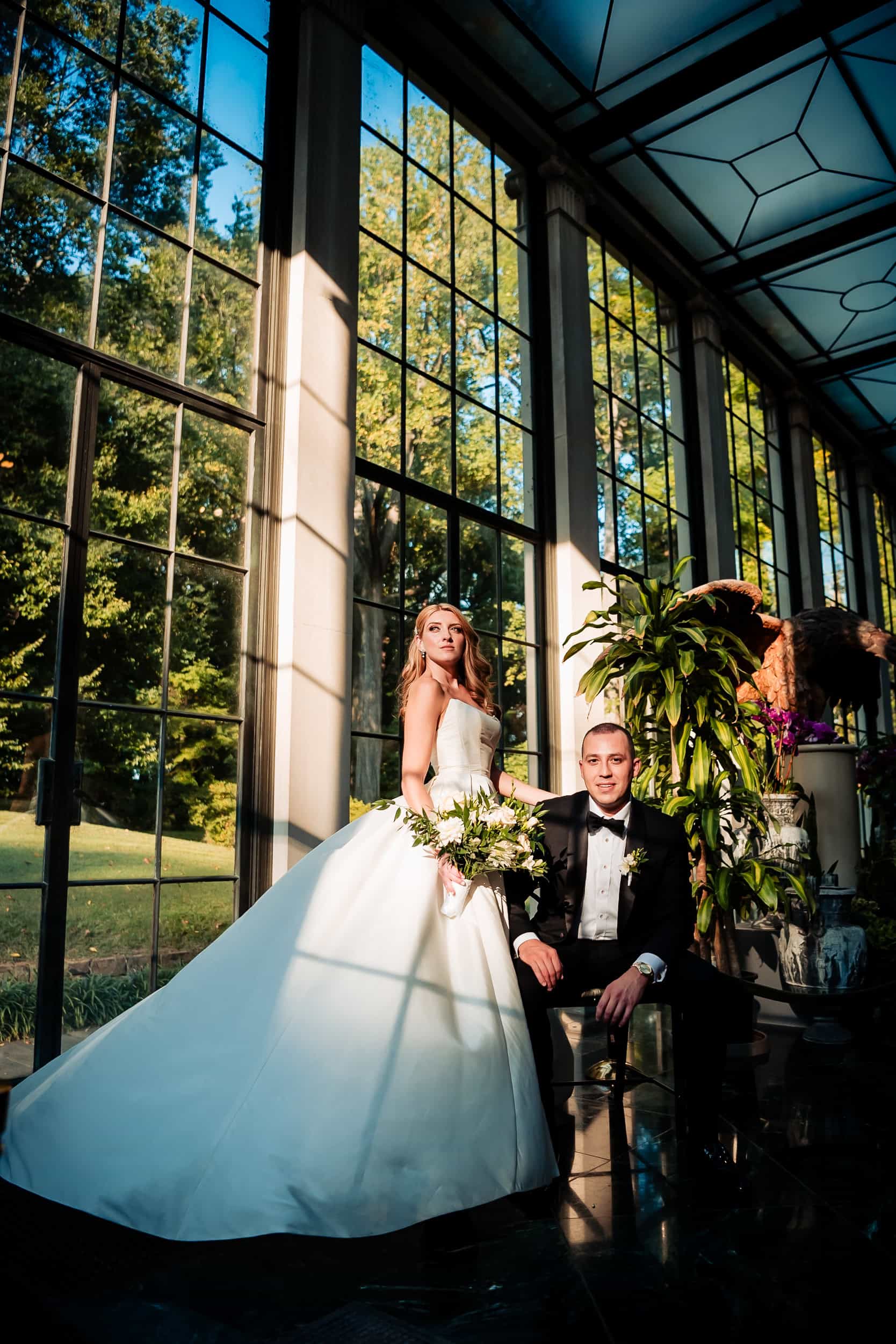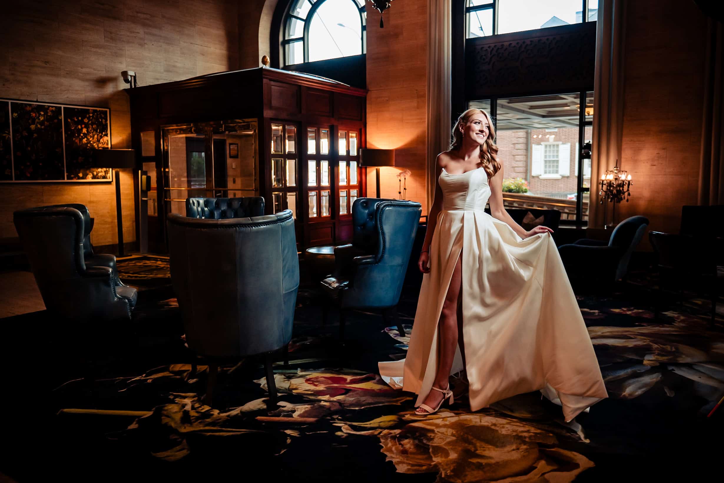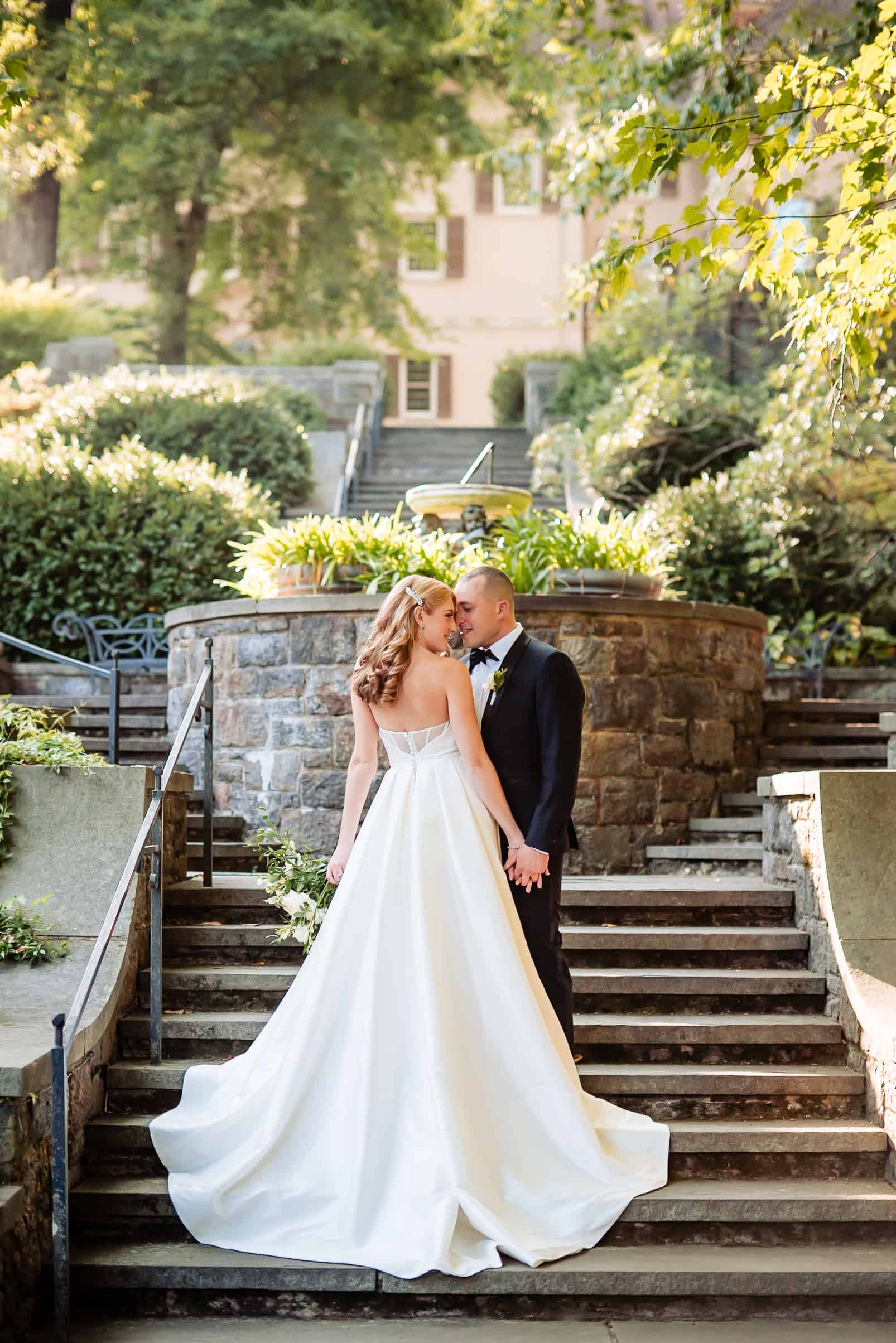 Before heading to Winterthur, we took some time to capture the couple in the hotel’s newly renovated lobby. The lobby’s elegant design, featuring sophisticated decor and beautiful lighting, provided a stunning backdrop for photos. Haley and Dakota’s chemistry shone through in every shot, and the luxurious setting enhanced the timeless quality of their portraits. It was the perfect way to encapsulate the beauty of the day and celebrate their love in a space that felt both classic and fresh.