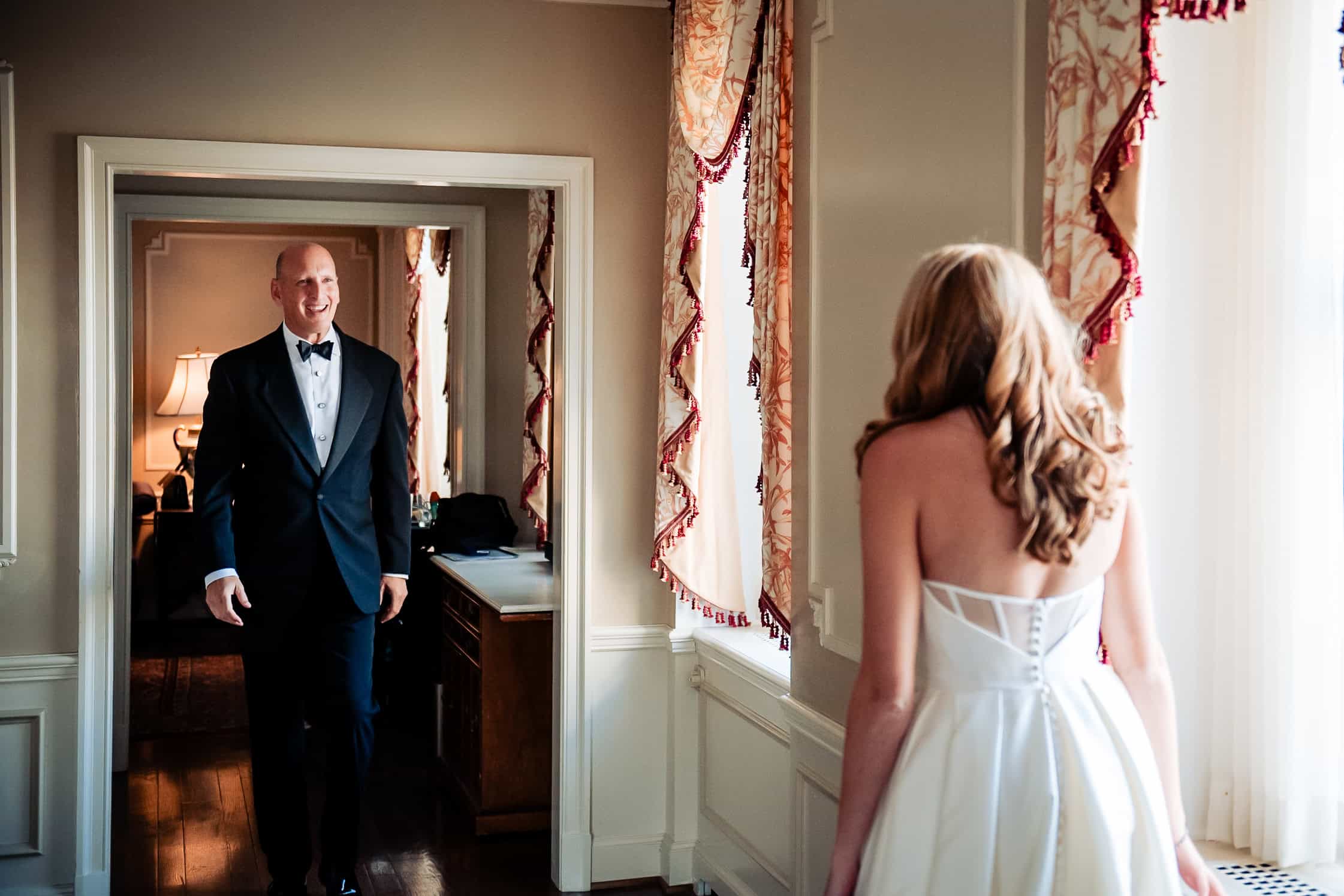 The couple’s first look took place at Winterthur’s breathtaking gardens—a moment filled with pure emotion and excitement. As Dakota turned to see Haley for the first time, his face said it all. Her beauty, their love, and the joy of the moment created a scene that was as intimate as it was picturesque. It was the perfect way to kick off their wedding day, setting the tone for everything that followed.