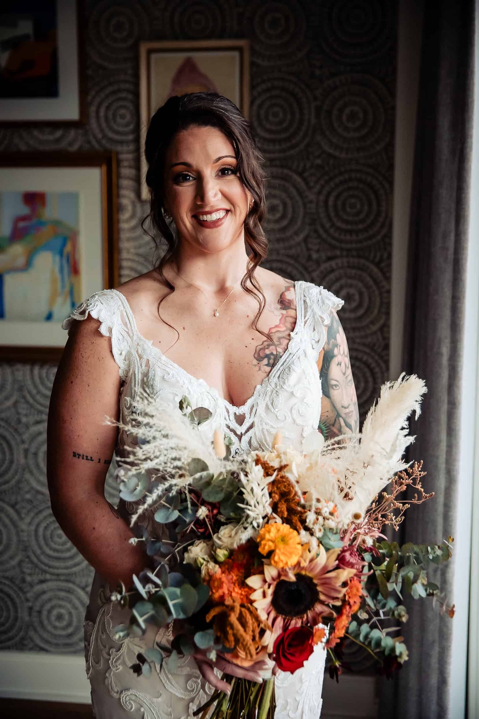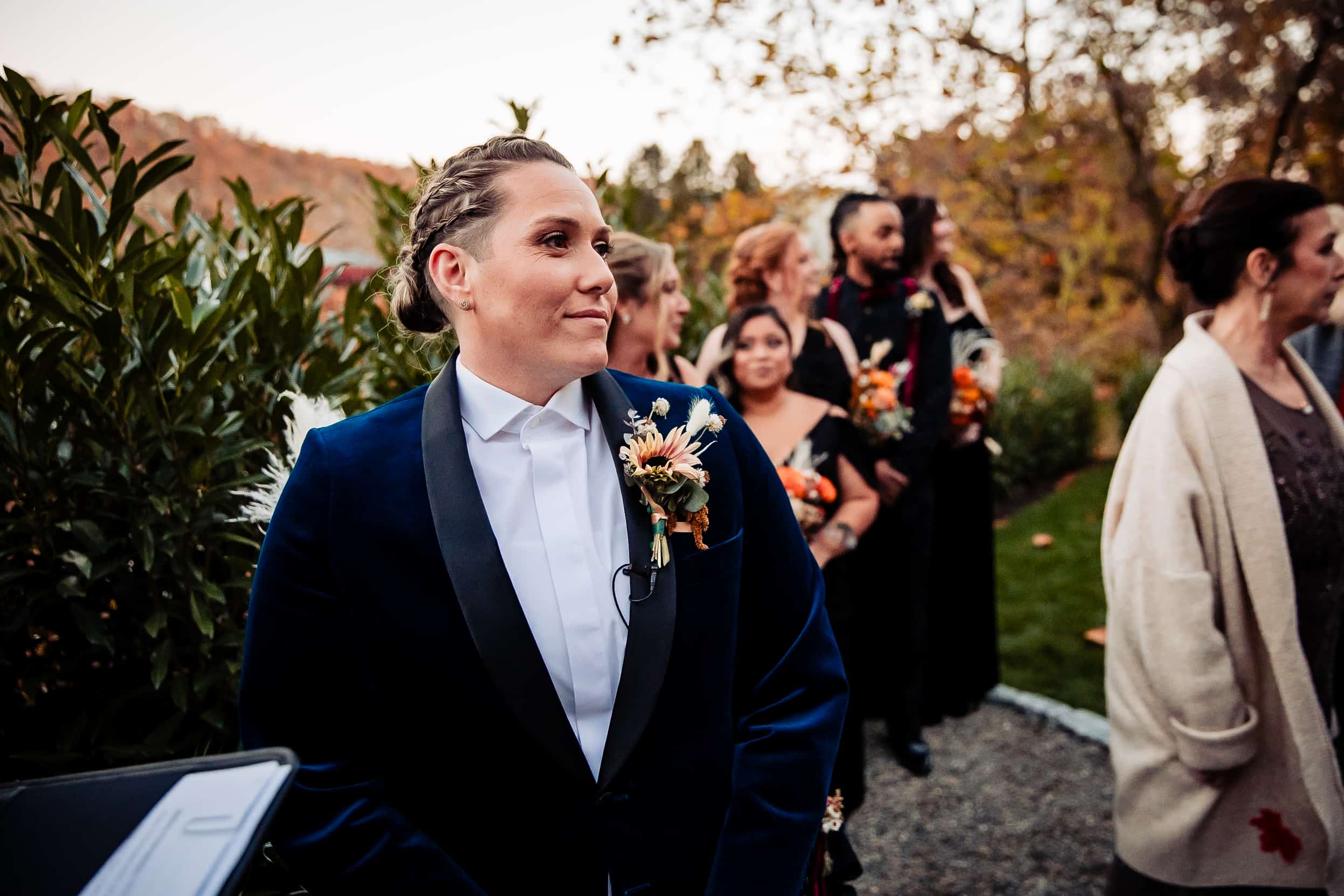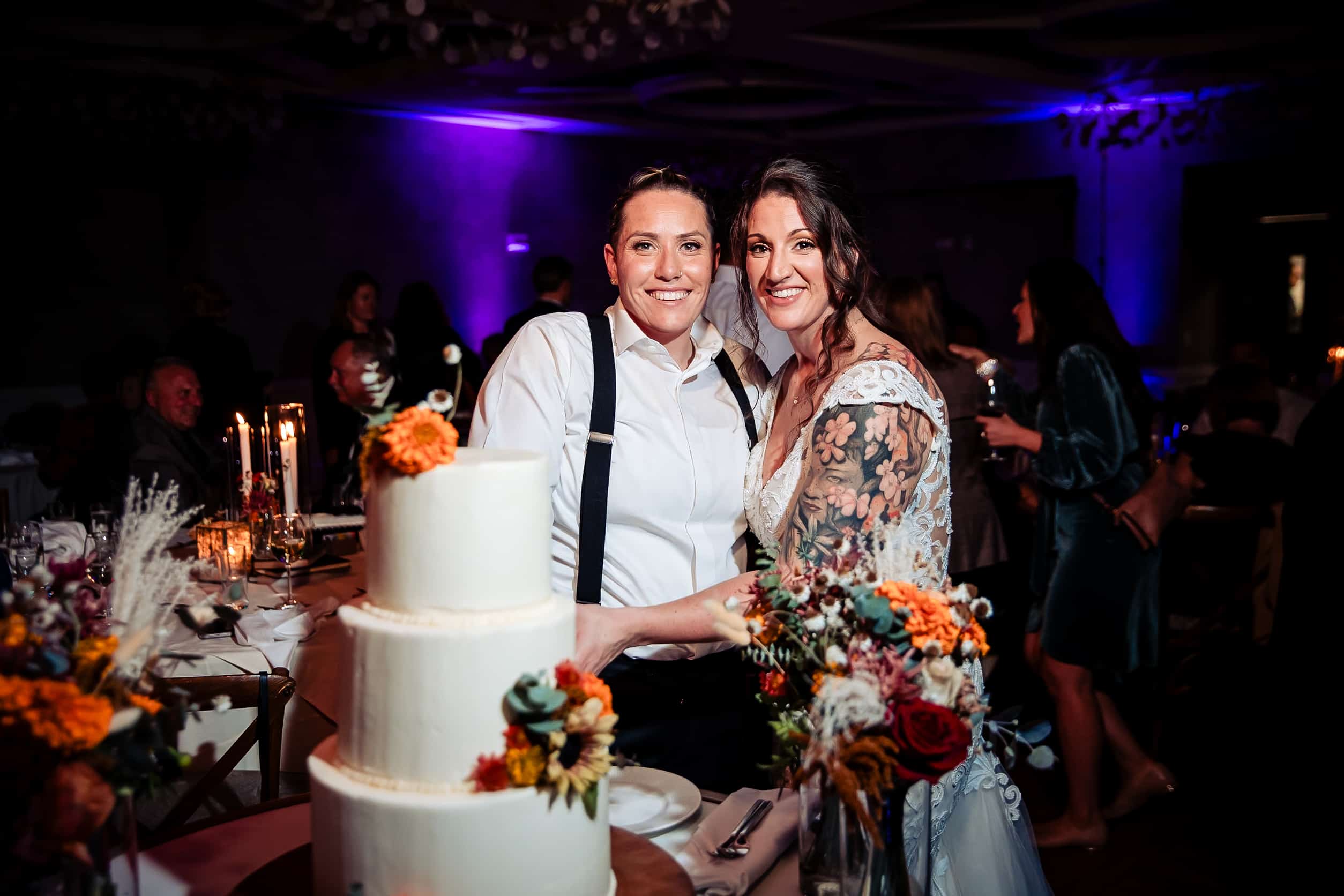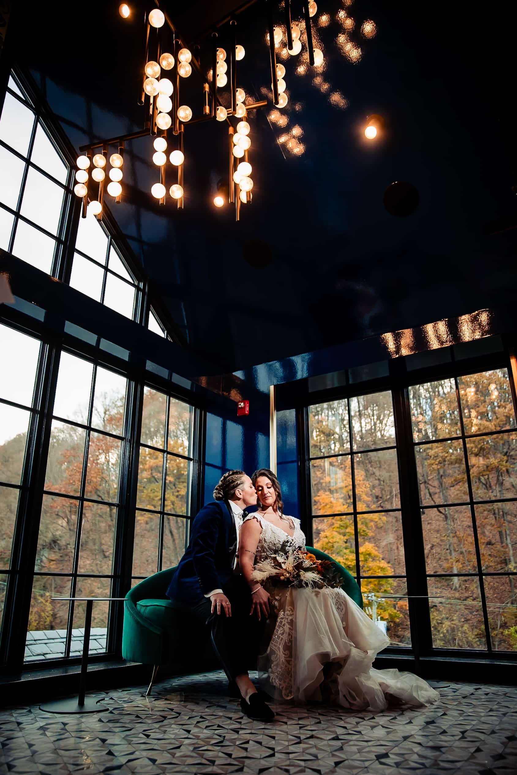 The brides, each in their unique style, embraced the edgy and elegant theme with their choice of attire. Amanda donned a sleek blue suit, while Amanda stunned in an elegant ivory gown with a touch of edginess in the form of intricate lace.