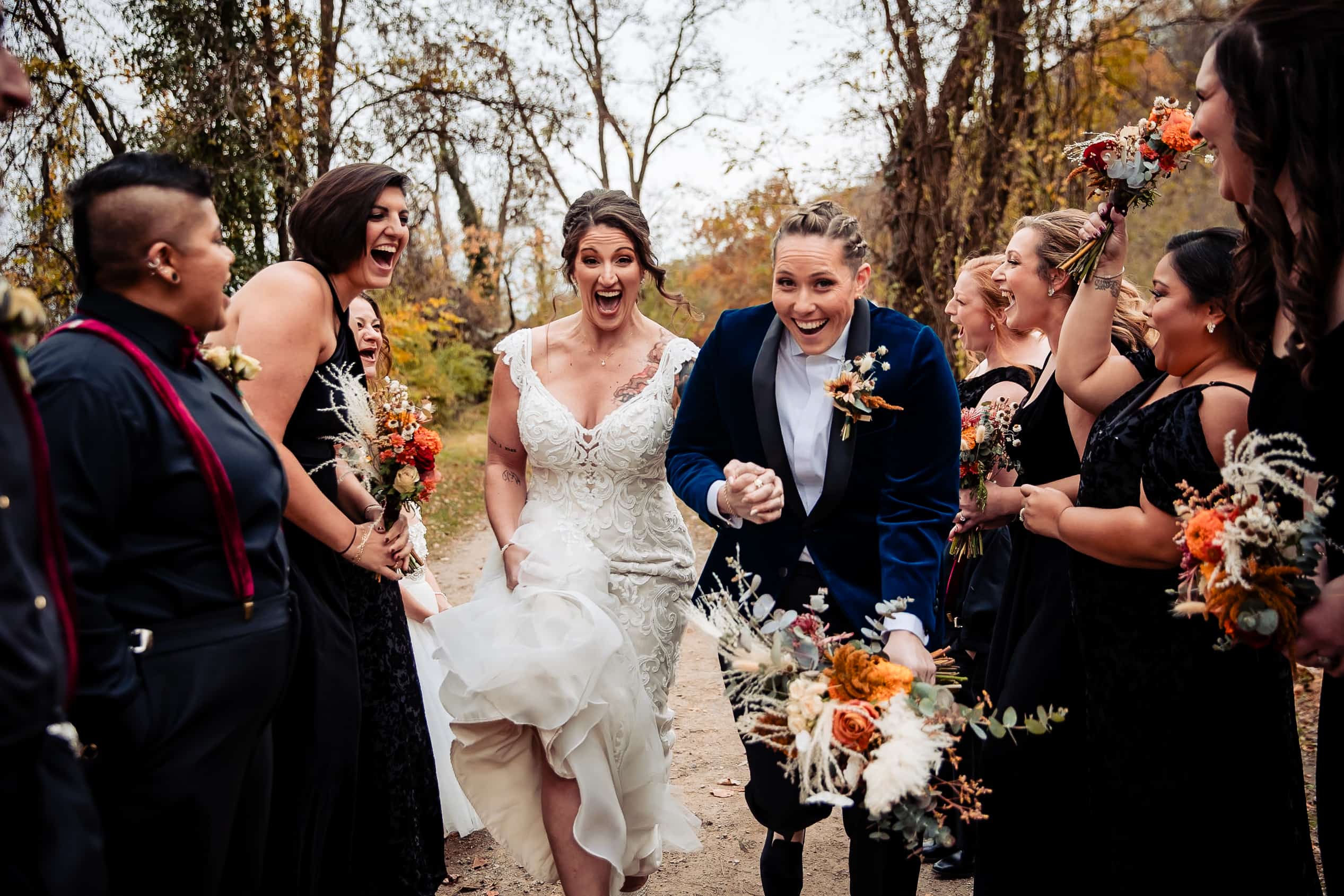 As the day unfolded, the couple ventured outdoors to capture their first look with the breathtaking beauty of fall as the background. With the vibrant hues of autumn leaves, we also captured some super fun wedding party photos!