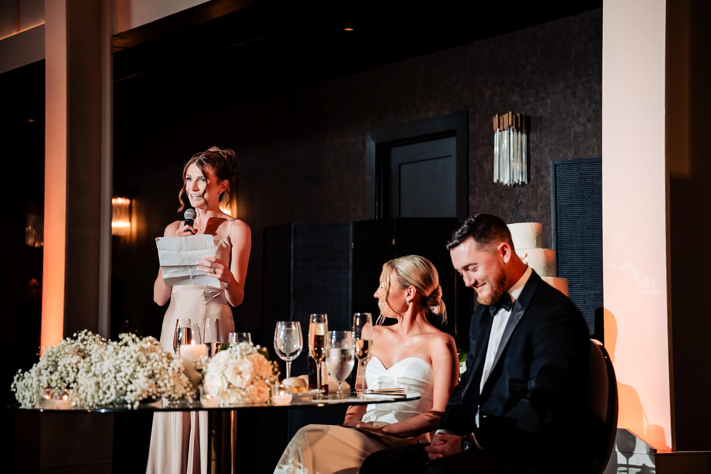 Guests were welcomed into The Ivy’s light-filled spaces and outdoor terraces, where they enjoyed drinks, passed hors d’oeuvres, and mingled. One of the most memorable details was Nicole’s thoughtful touch: framed marriage advice from her first-grade students placed on each table. Their sweet and hilarious words of wisdom added both charm and laughter, making this part of the celebration especially unique and personal.