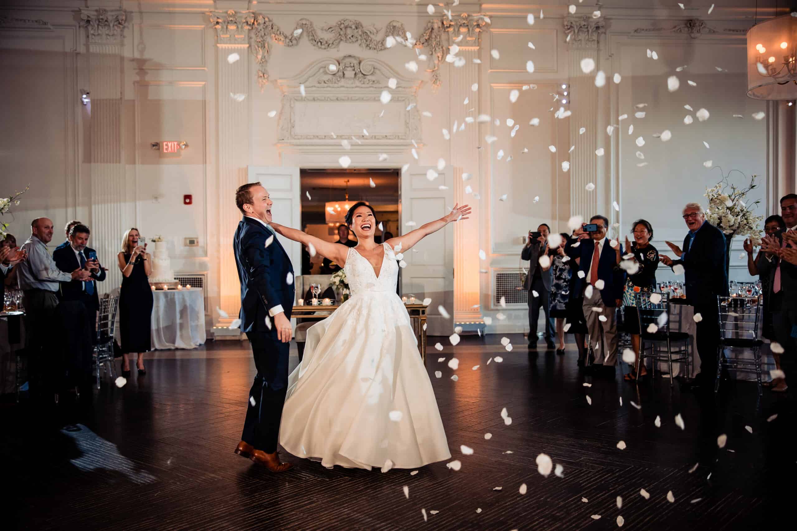 Don’t forget to leave time to bustle your dress before entering your reception. Practice bustling your dress to know how much time you’ll need.